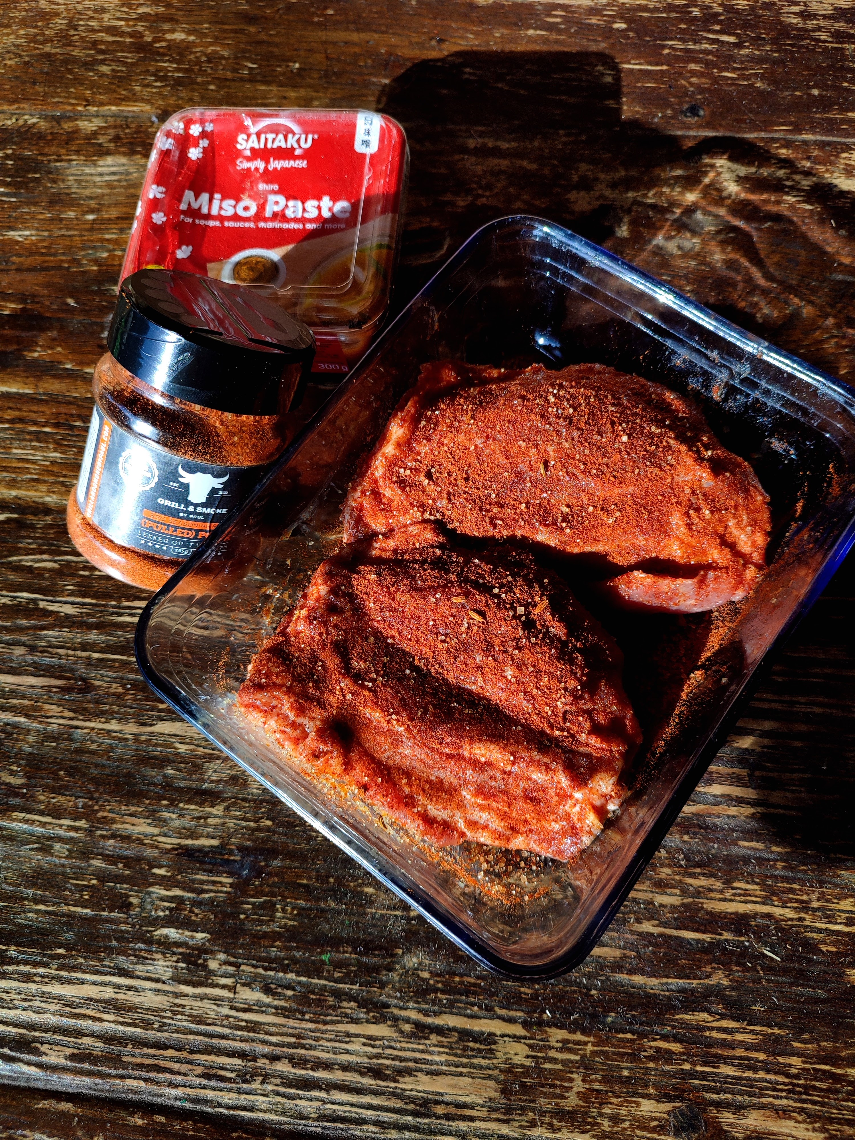 - Smeer de pigwings in met de miso pasta en doe de rub erop.