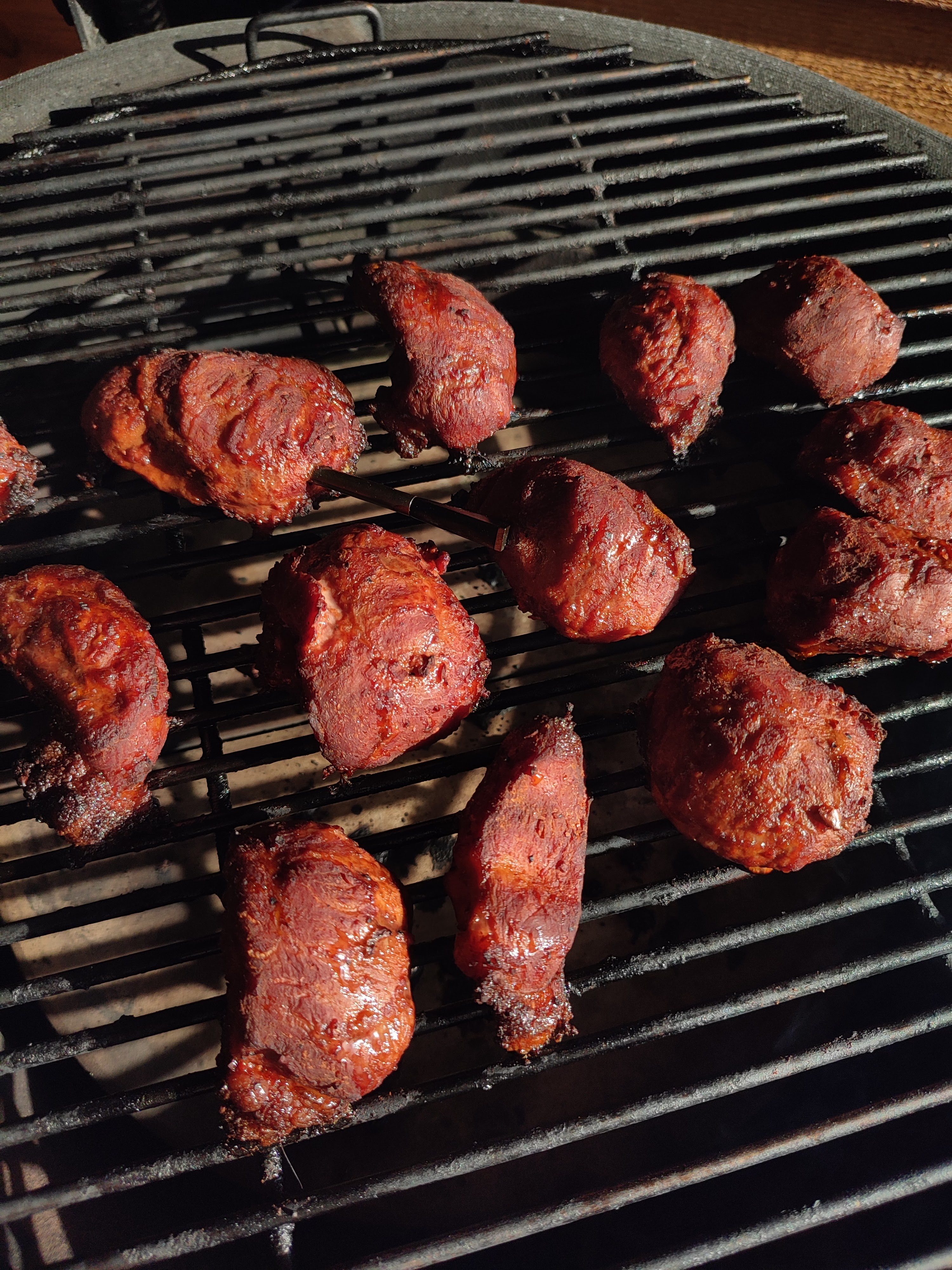 - Rook nu de varkenswangen met het rookhout voor 1 uur op 110 graden.