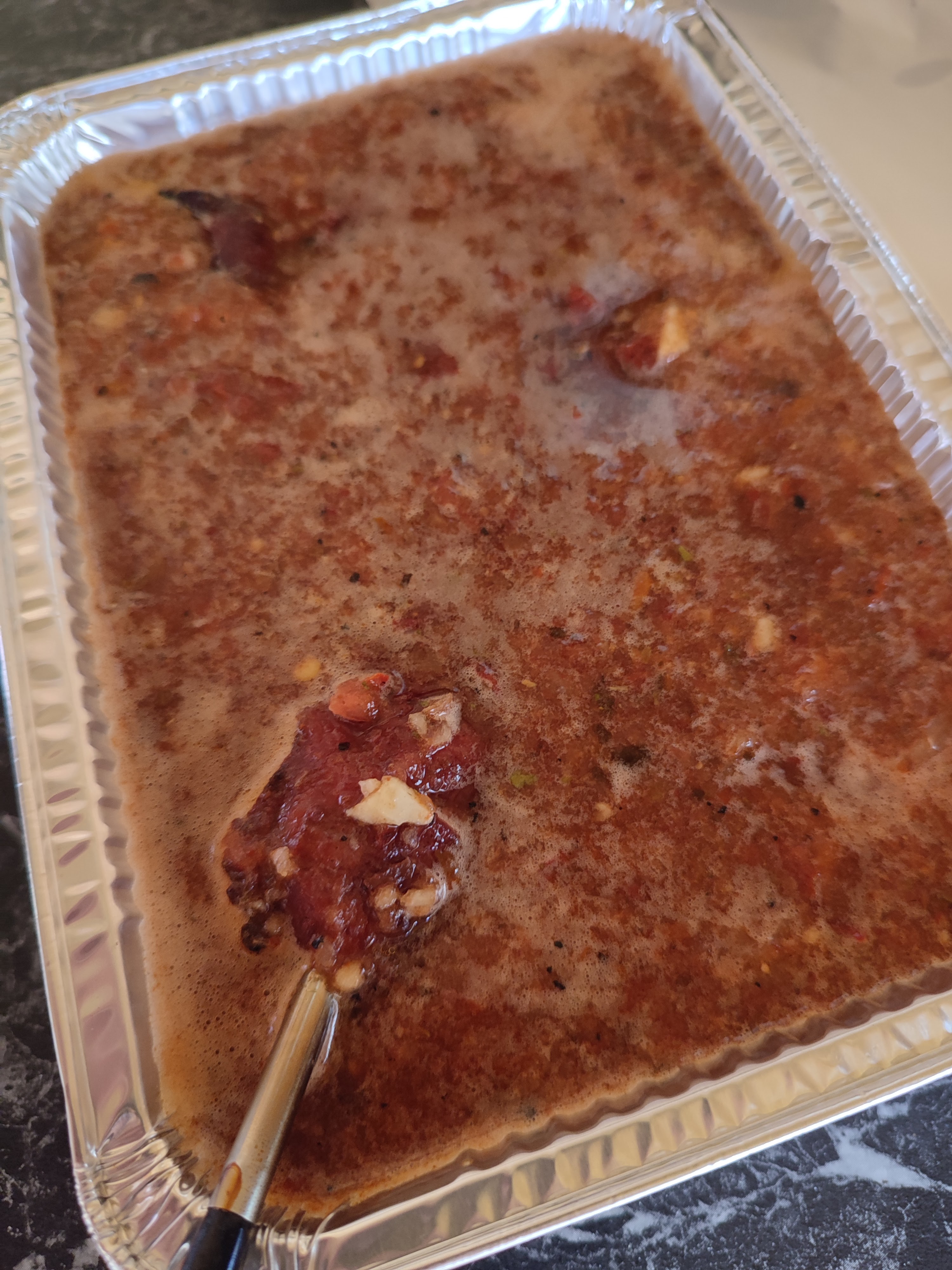 - Doe de bouillon in een ander pannetjes doe de vlees terug in de ovenschaal of dutch oven en voeg een beetje van de bouillon toe om het vlees vochtig te houden.