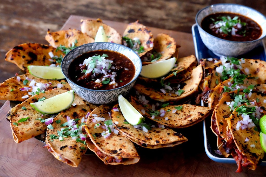 - Serveer de Birria taco’s met partjes limoen en de overgebleven bouillon om ze daar lekker in te dopen.