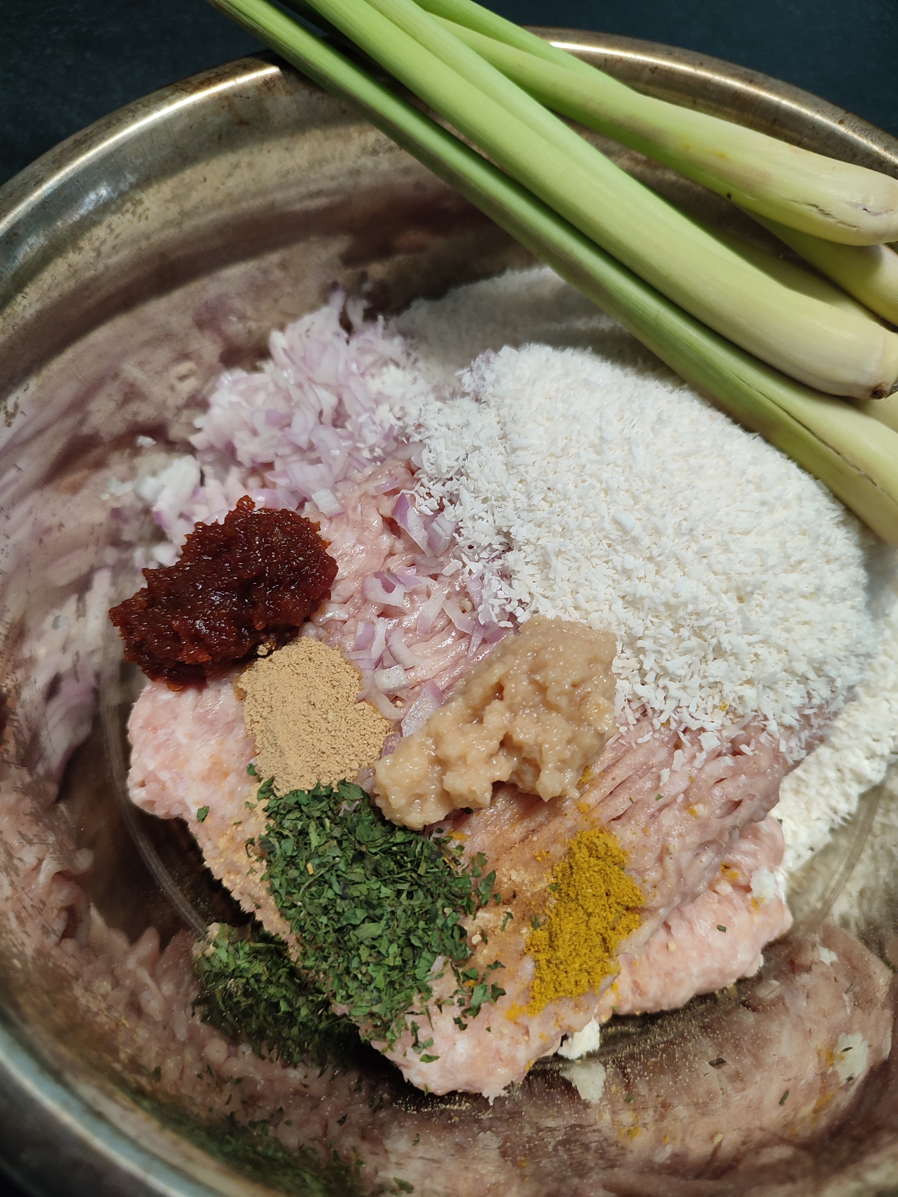 - Neem nu wat van het mengsel en knijp dit nu op het dikke gedeelte van de sereh.
