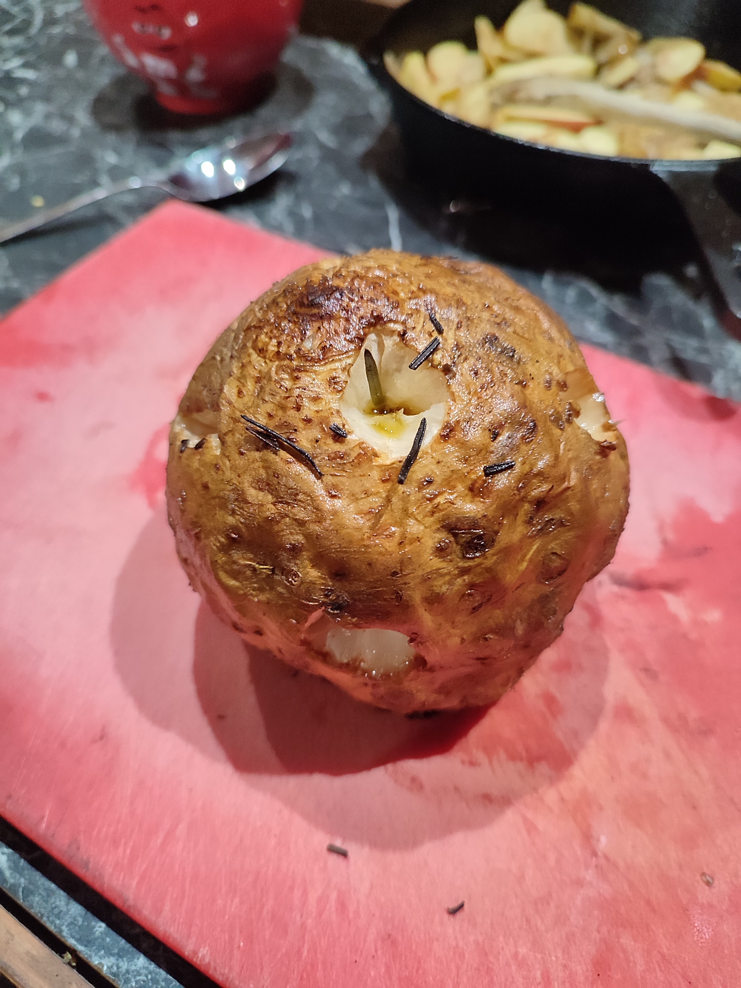 - Doe in elk gaatje een teentje knoflook en wat rozemarijn.