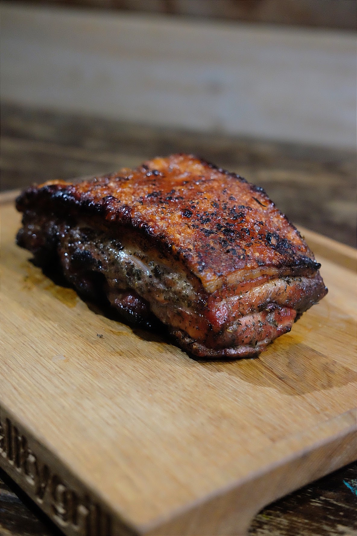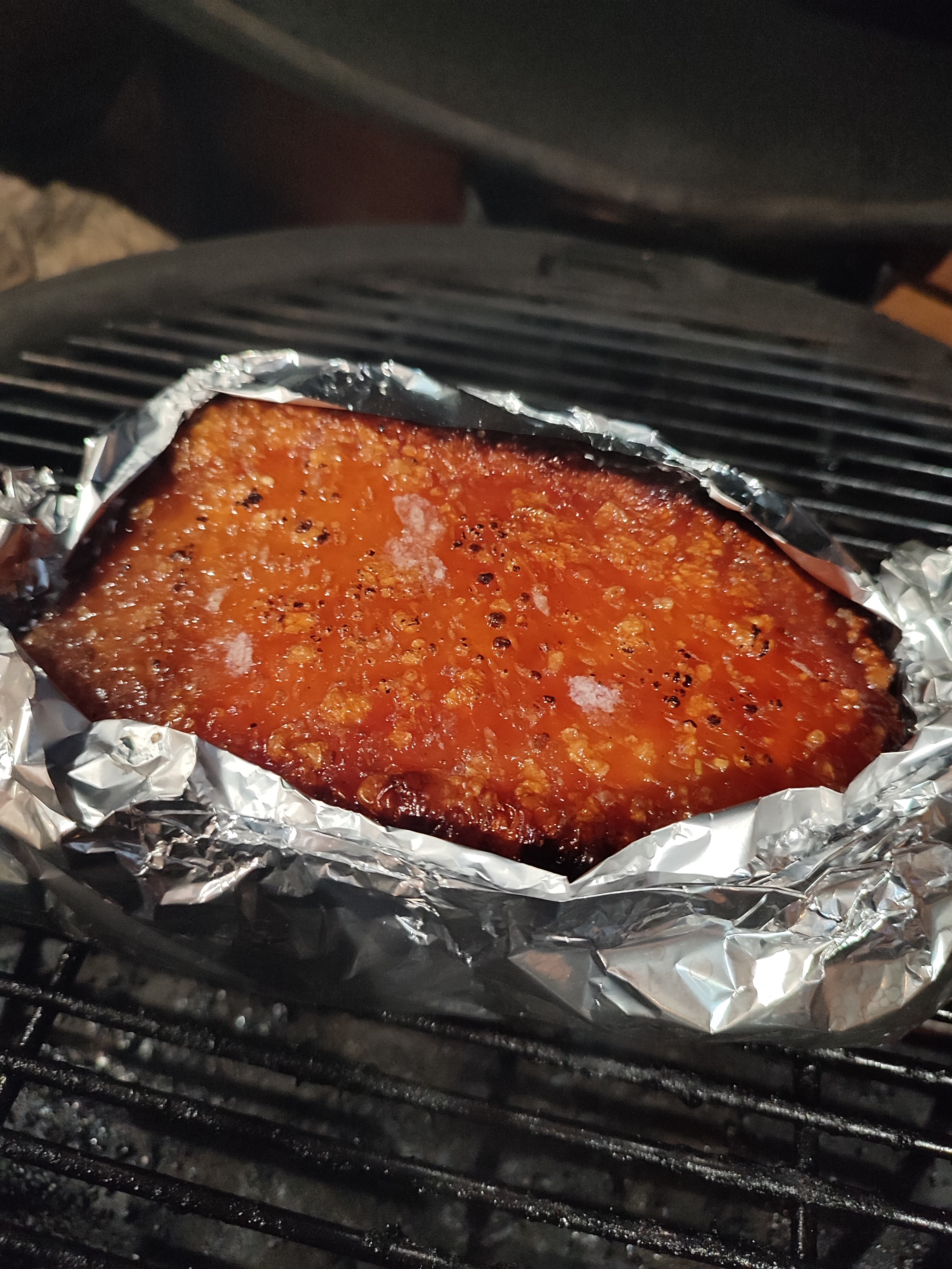 - Leg de buik nu op de bbq en gaar de eerste 30 minuten met de zout erop.