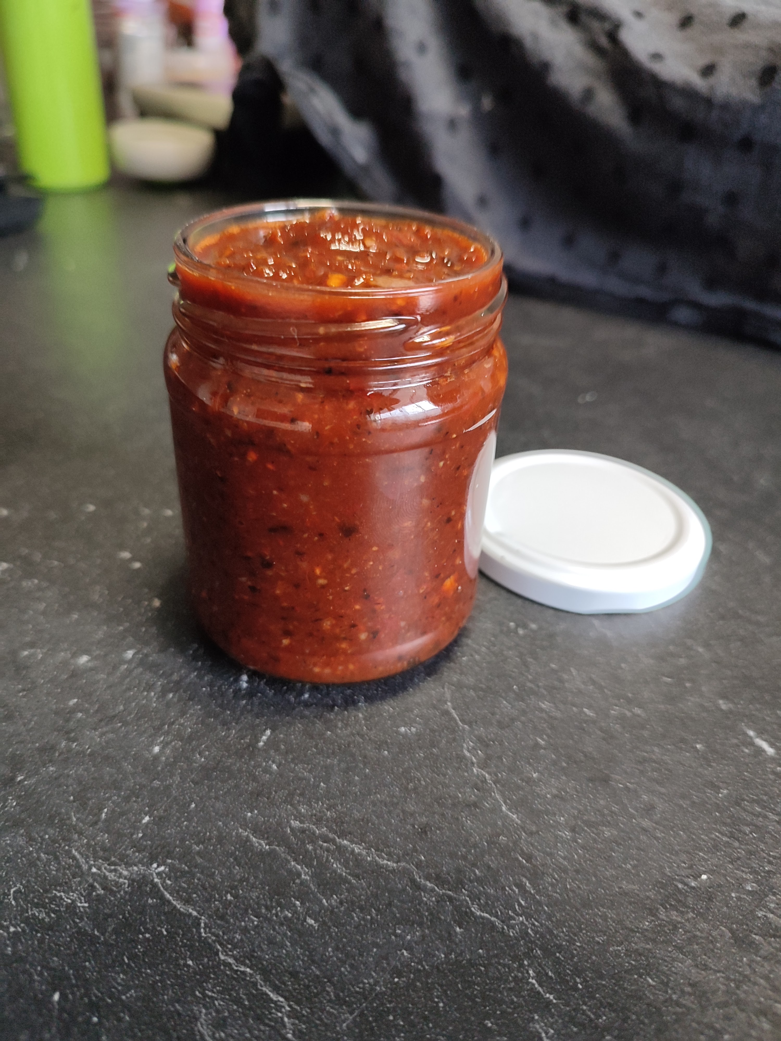- Lekker met wat friet en een saus gemaakt van 1 deel peper pasta en 2 delen tomaten ketchup.