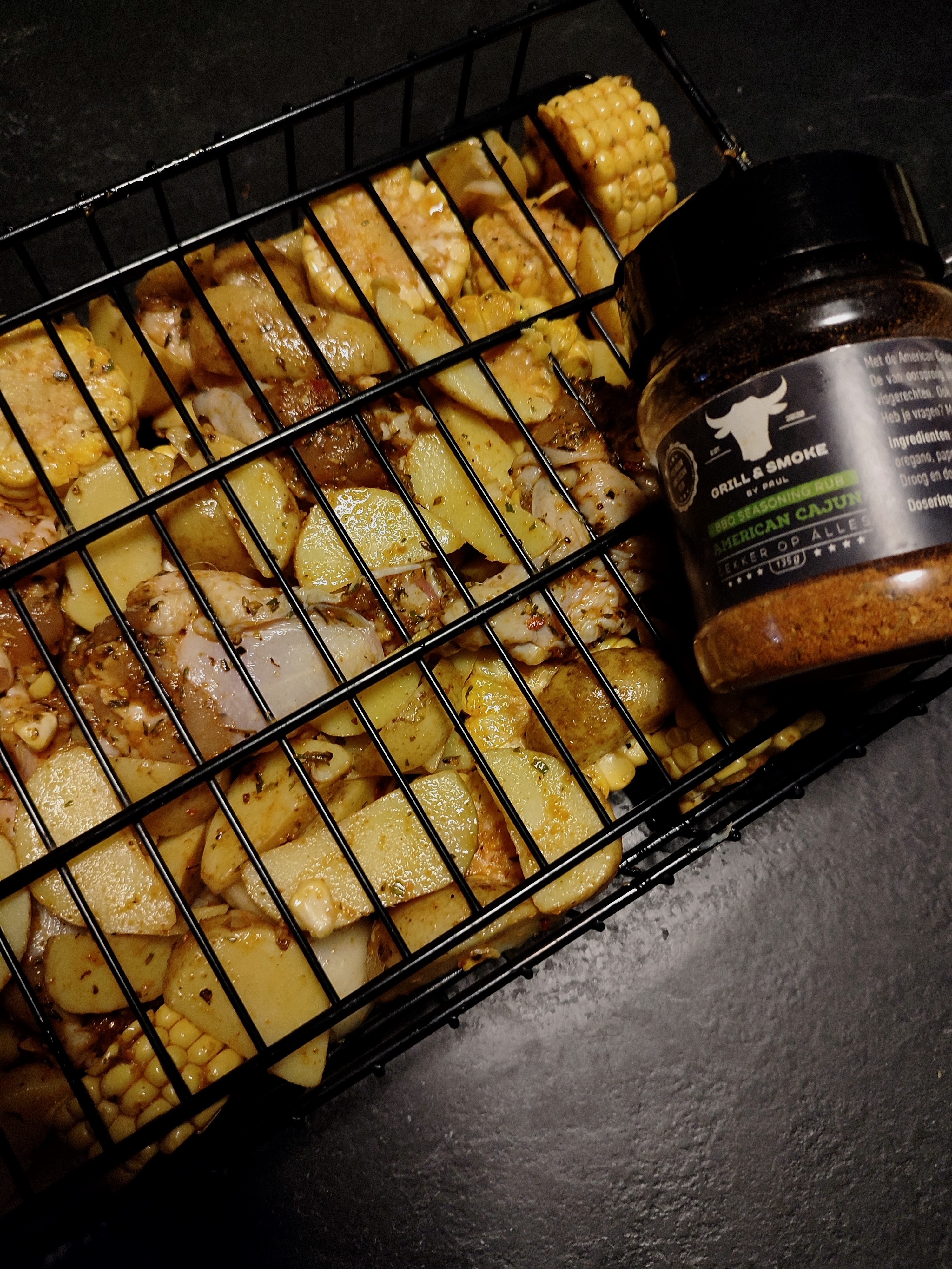 - Doe alles samen met de kipkluifje in de kom en voeg de rest van de rub toe en nog wat olie.