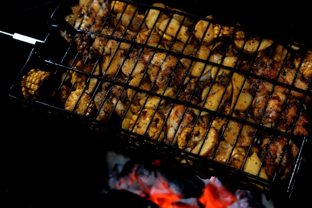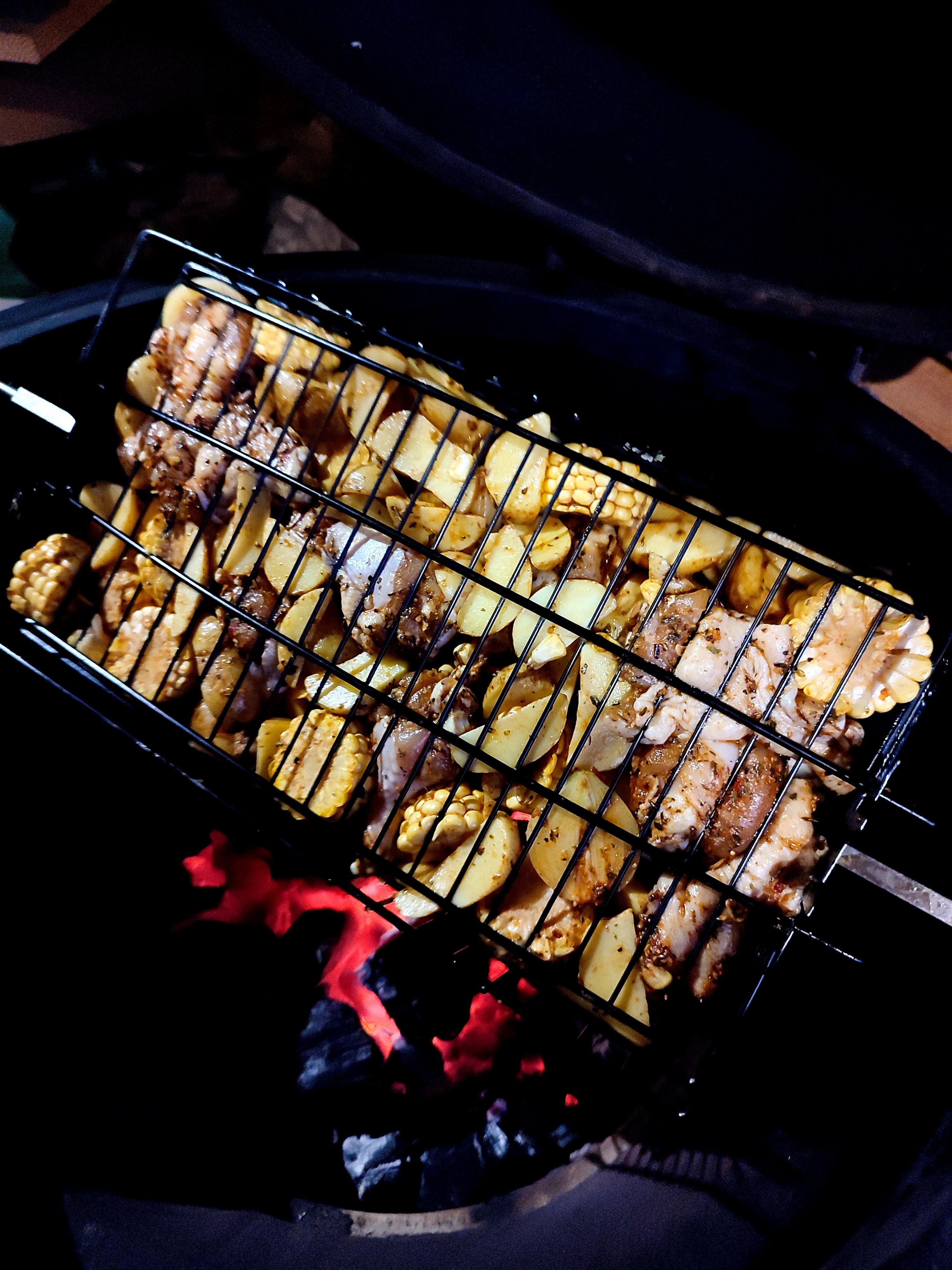- Als de bbq op temperatuur doe dan de spit op de bbq.