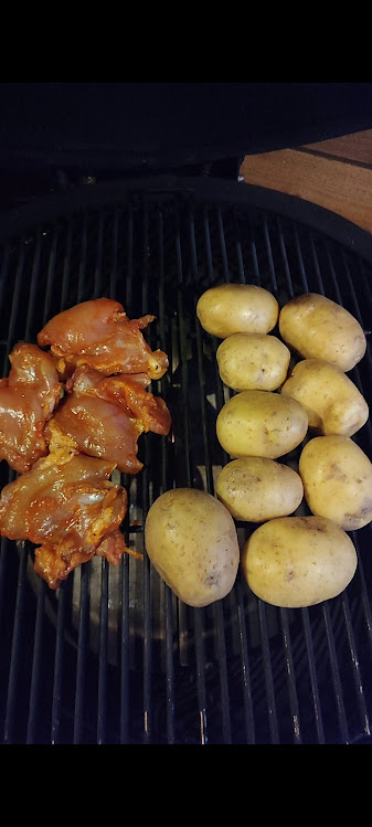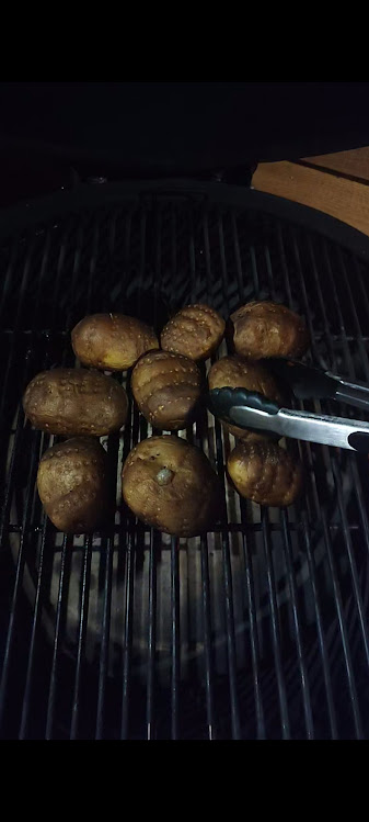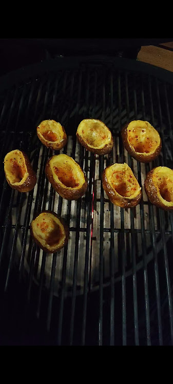 - Leg de aardappelen nu terug op de bbq en bak voor 15 minuten.