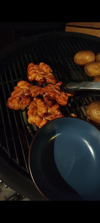- Leg de dijen op de bbq en laat 30 tot 45 minuten garen.
