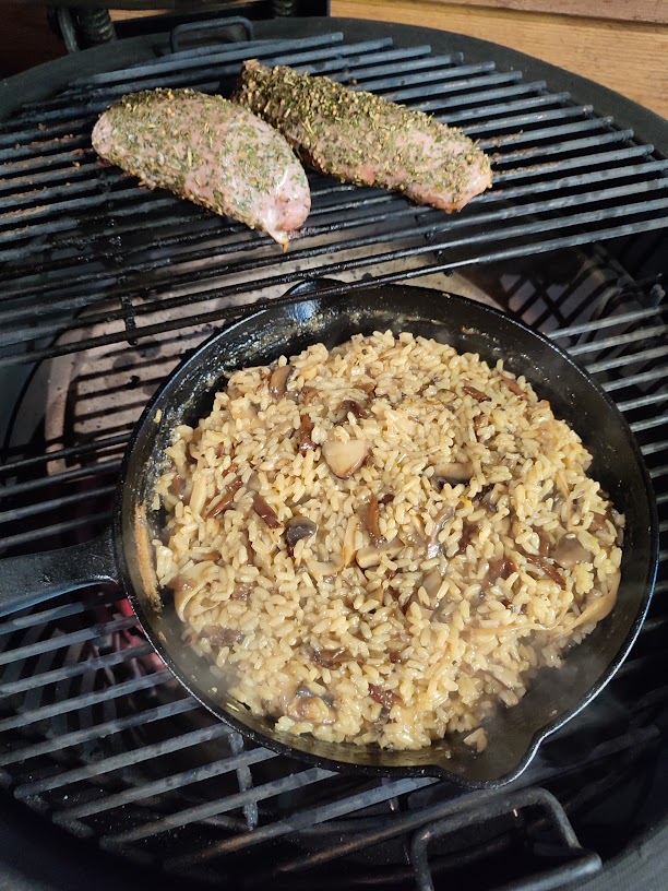 - Leg ondertussen de varkenshaasjes op de indirecte kant zodat die alvast wat kunnen garen als de deksel steeds dicht is.