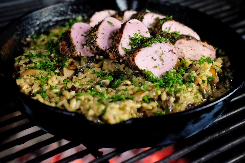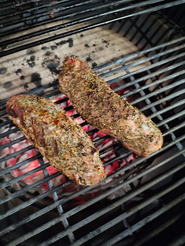 - Ondertussen grill je de varkenshaasjes nog even aan op de directe hitte tot mooi kleur.