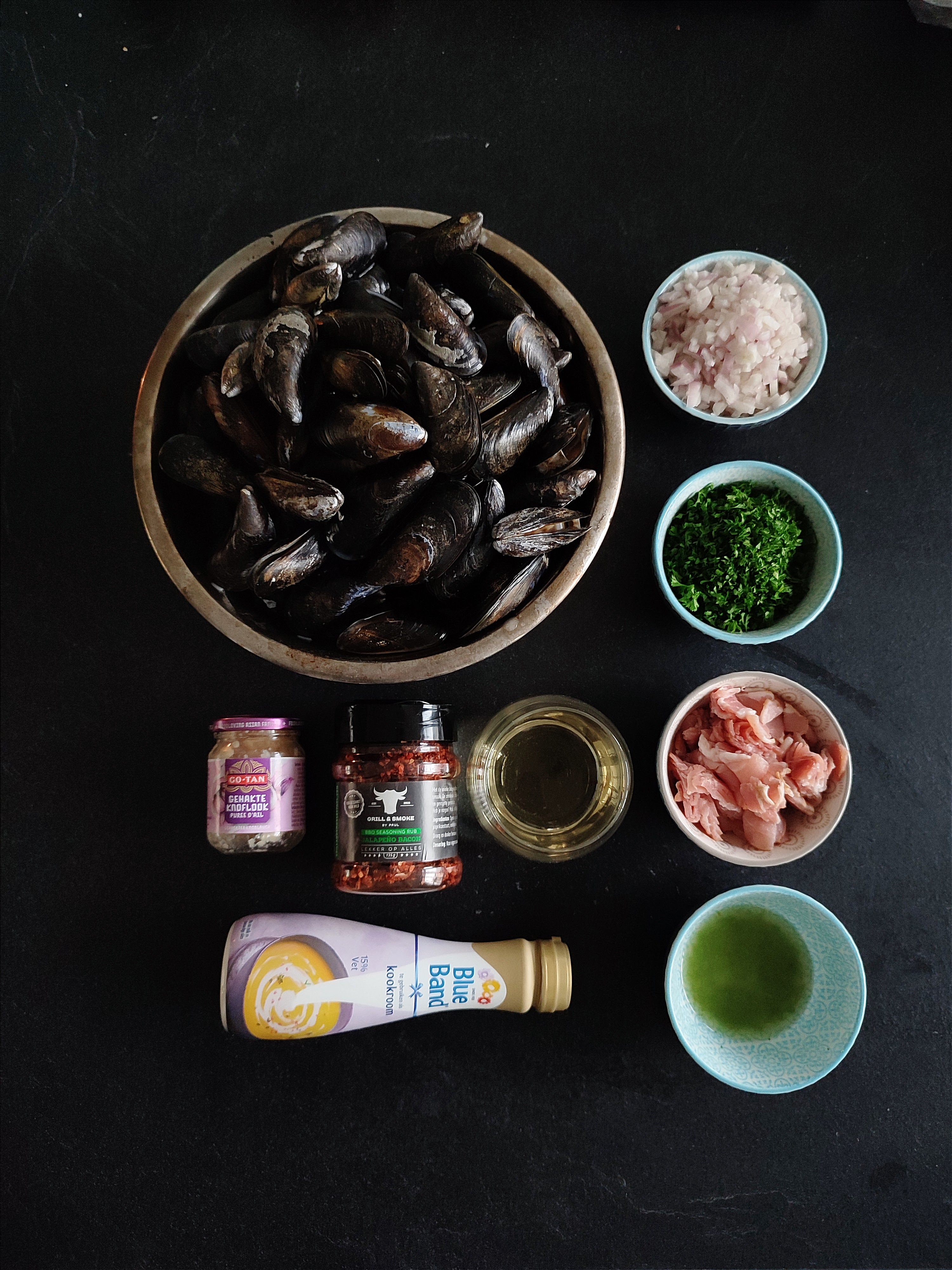 - Zijn alle mosselen goed open voeg dan de peterselie en de sap en rasp van de limoen toe.