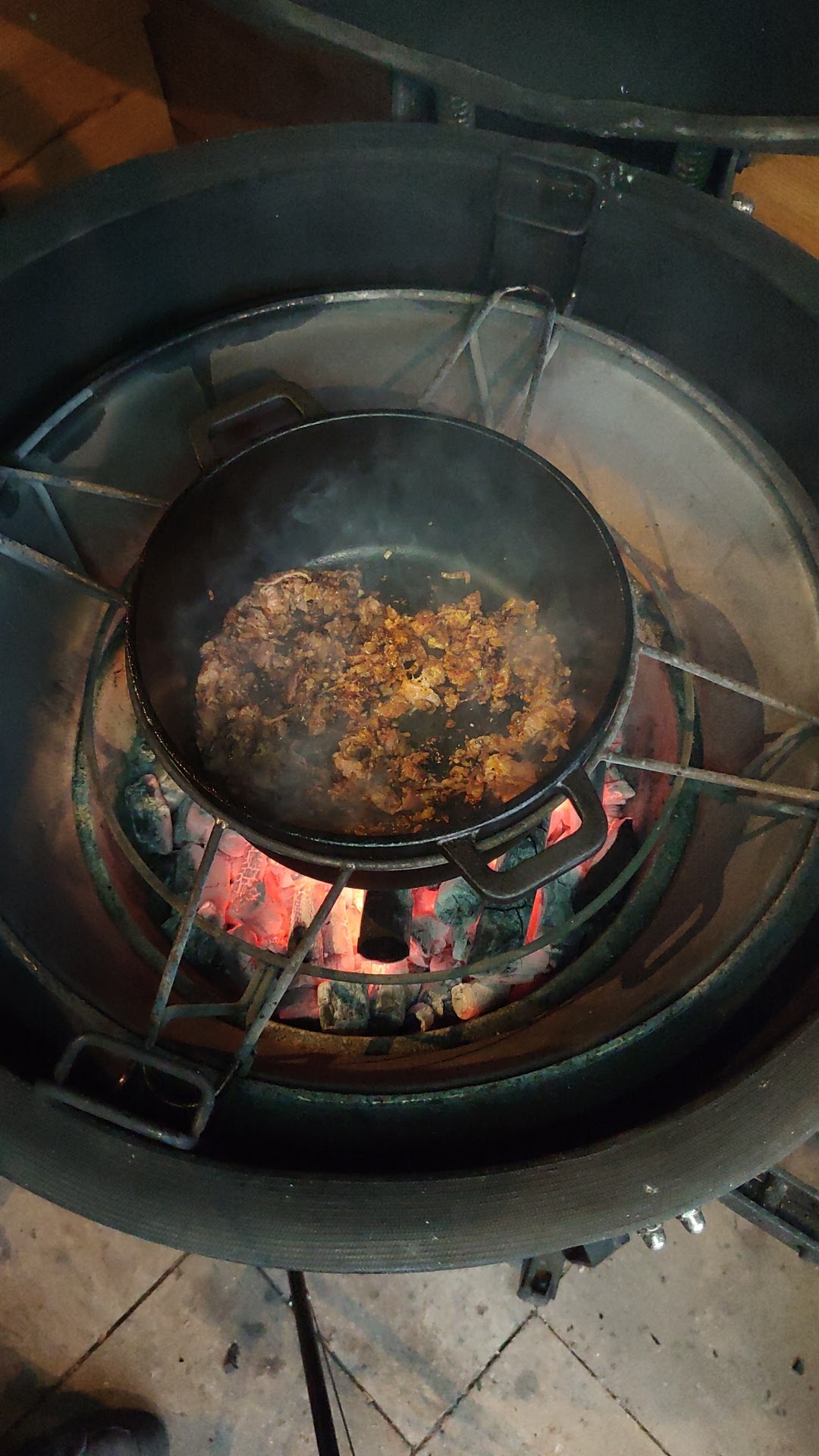 - Steek de bbq aan voor directe hitte samen met een dutch oven en breng hem naar 200 graden.