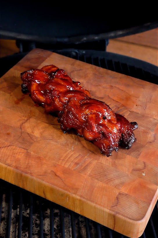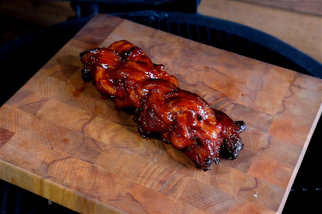 - Vlecht nu de repen buikspek zoals je een challah brood zou vlechten.