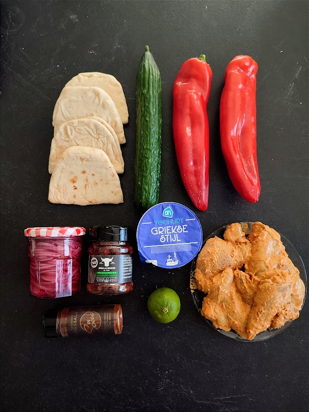 - Mix alle ingrediënten door elkaar en voeg de marinade aan de kippendij.