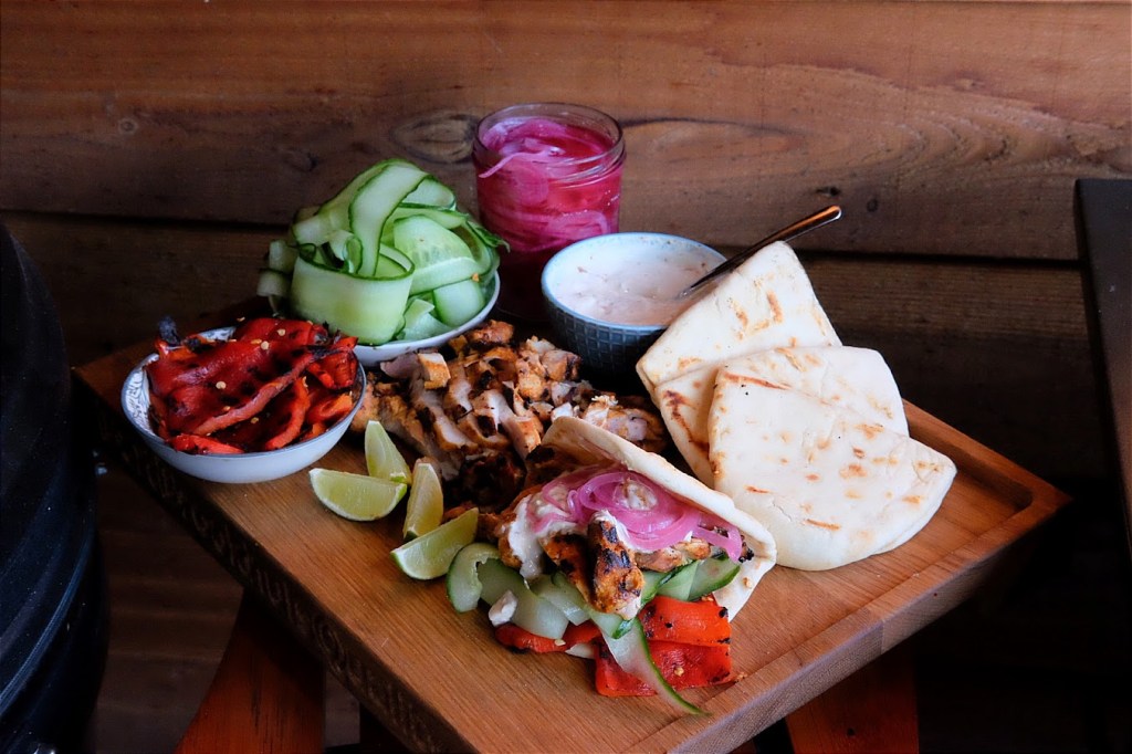 - Pak nu een broodje doe er 2 plakken paprika op en een paar komkommerlinten leg hierboven op kippendij en rode ui doe hier nog wat saus overheen en eet smakelijk.