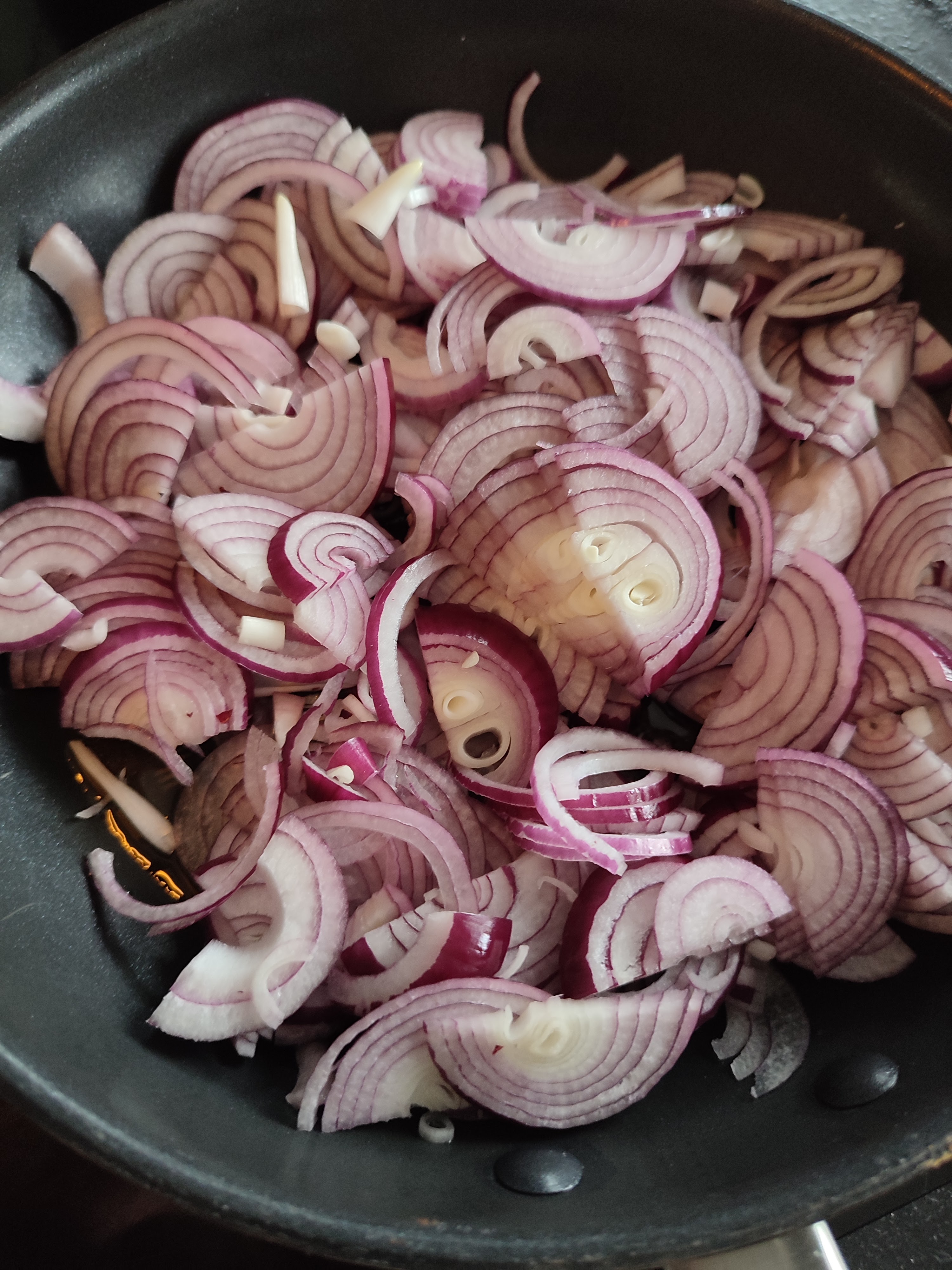 - Snij de uien in halve ringen.
