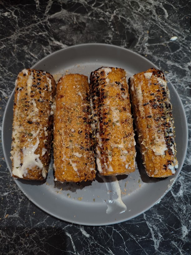 - Doe peper en zout op de maiskolven.