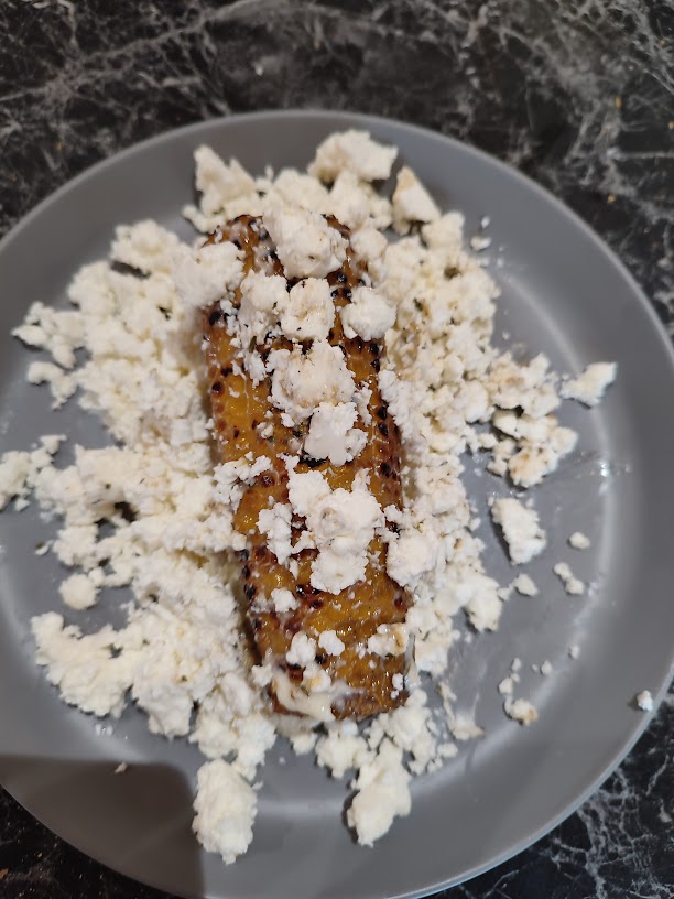 - Rol de maiskolven door de feta.