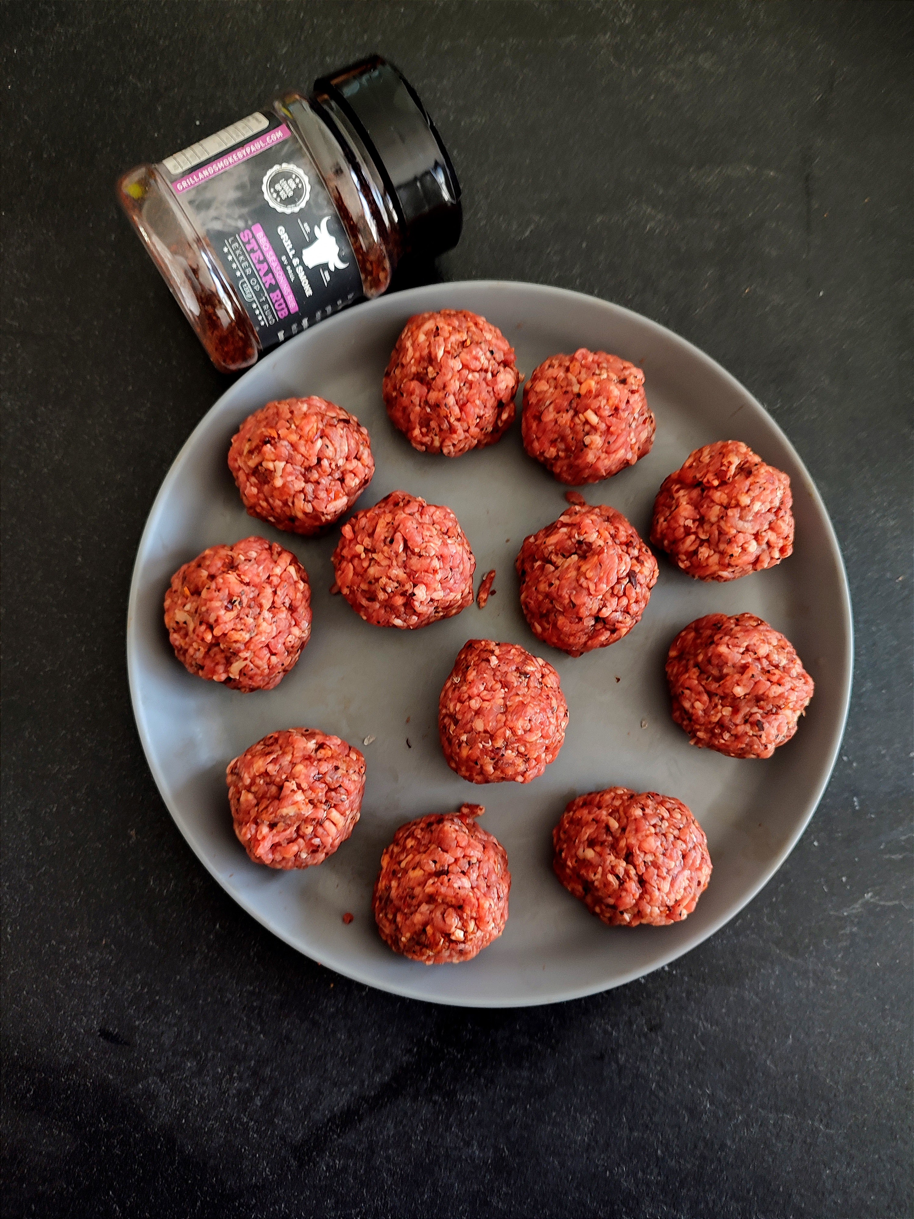 - Verdeel het gehakt in 12 balletjes van ongeveer 42 gram.