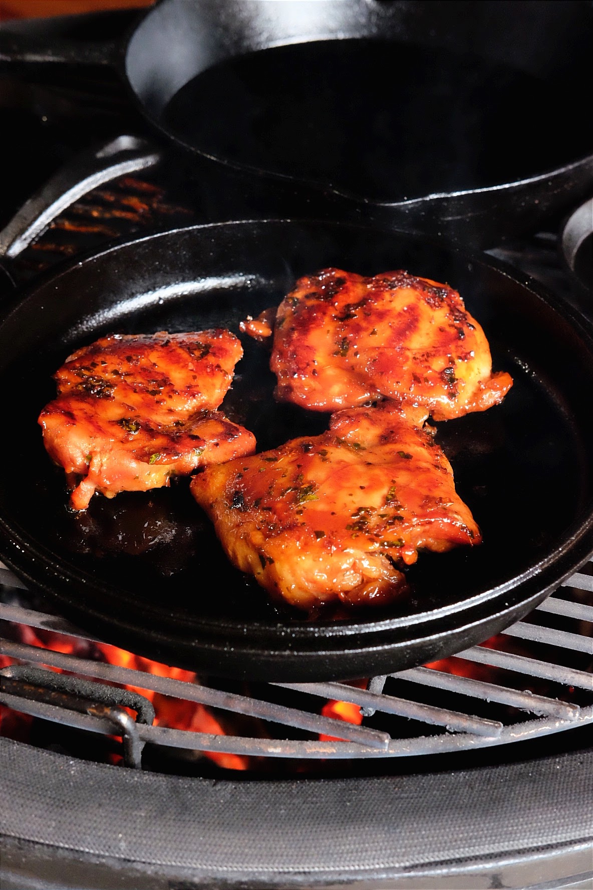 - Leg nu de dijen in de skillet en giet de marinade over de dijen.