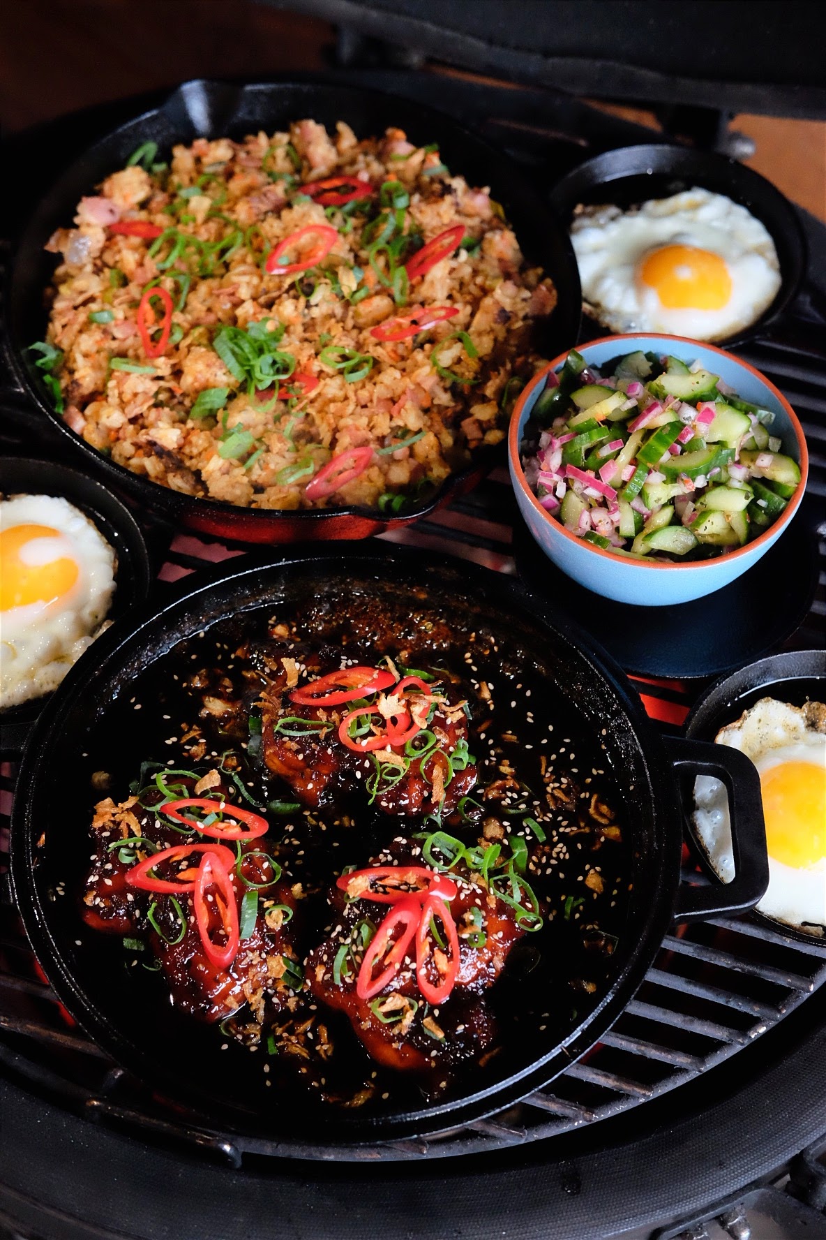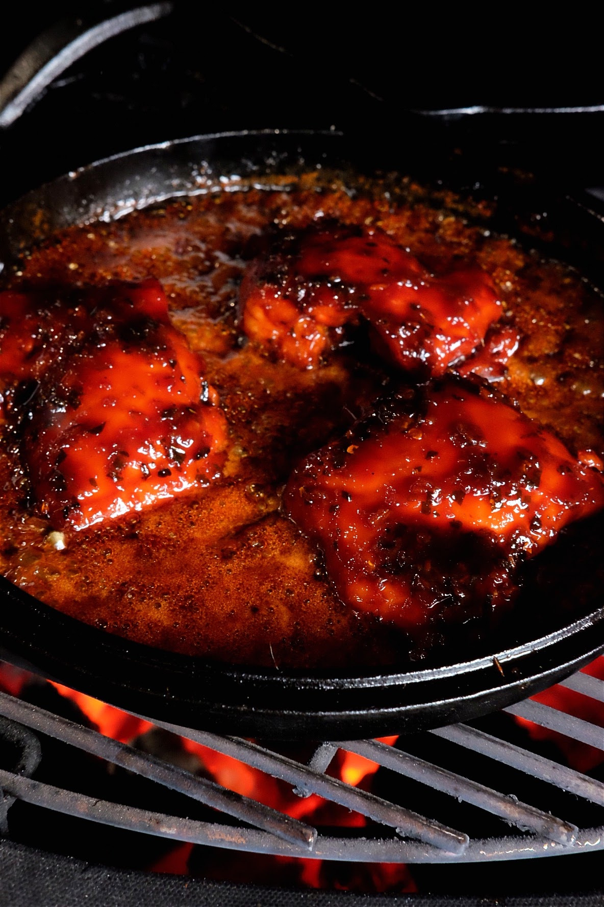 - Steek de bbq aan voor directe hitte met een skillet op 160 graden.