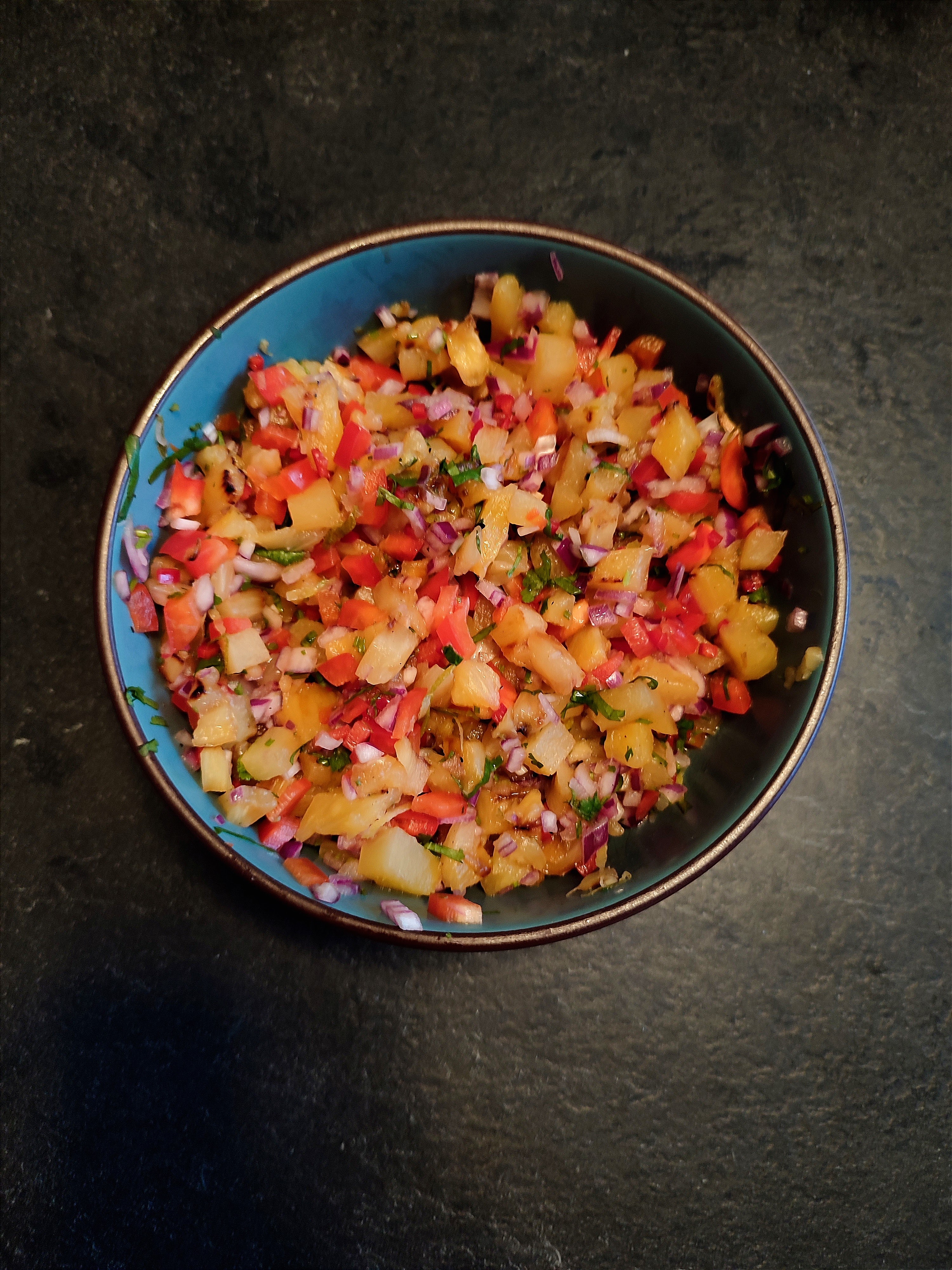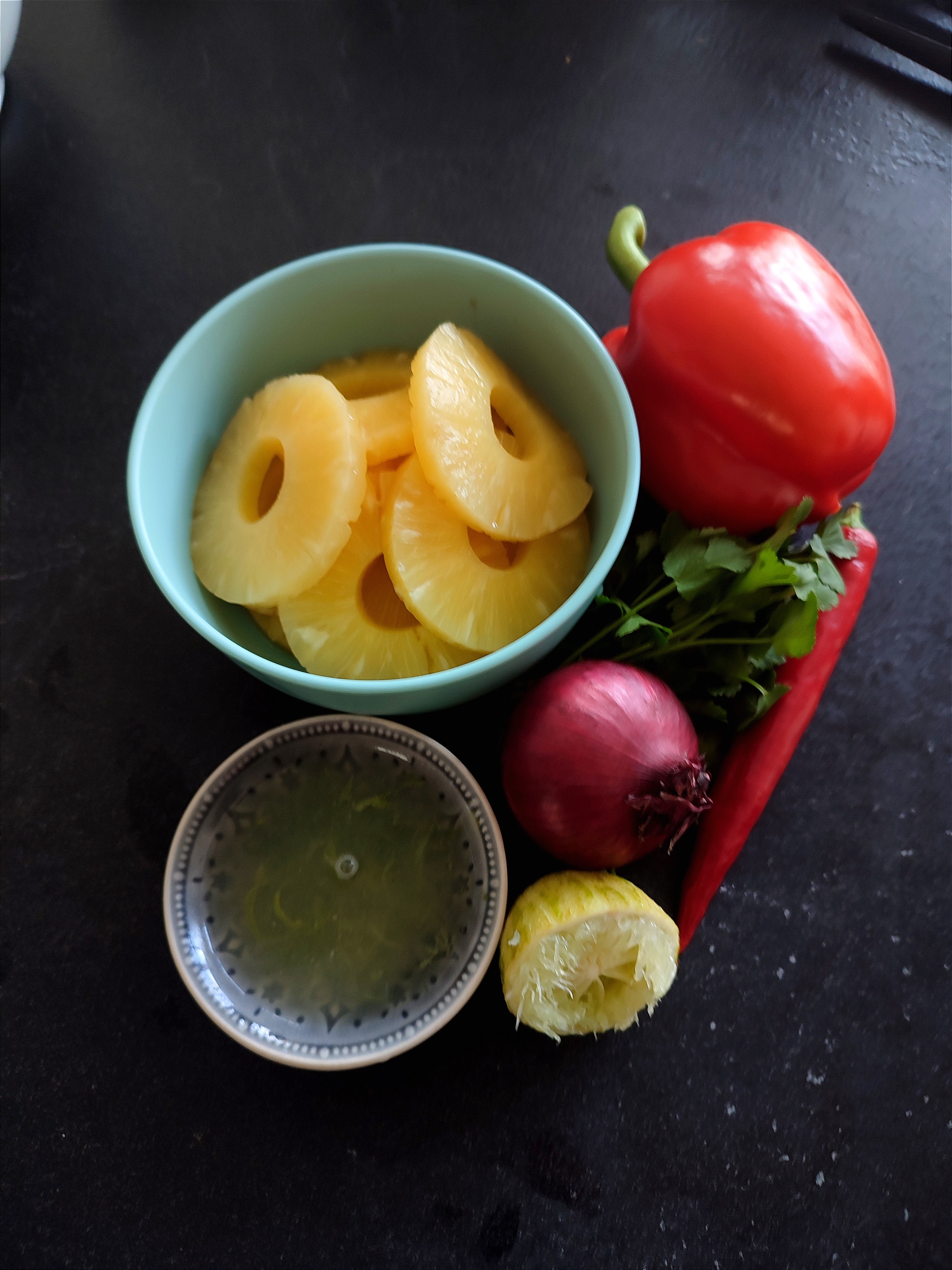 - Maak de ananas schoon en snijdt in plakken of laat de ananas schijven uitlekken.