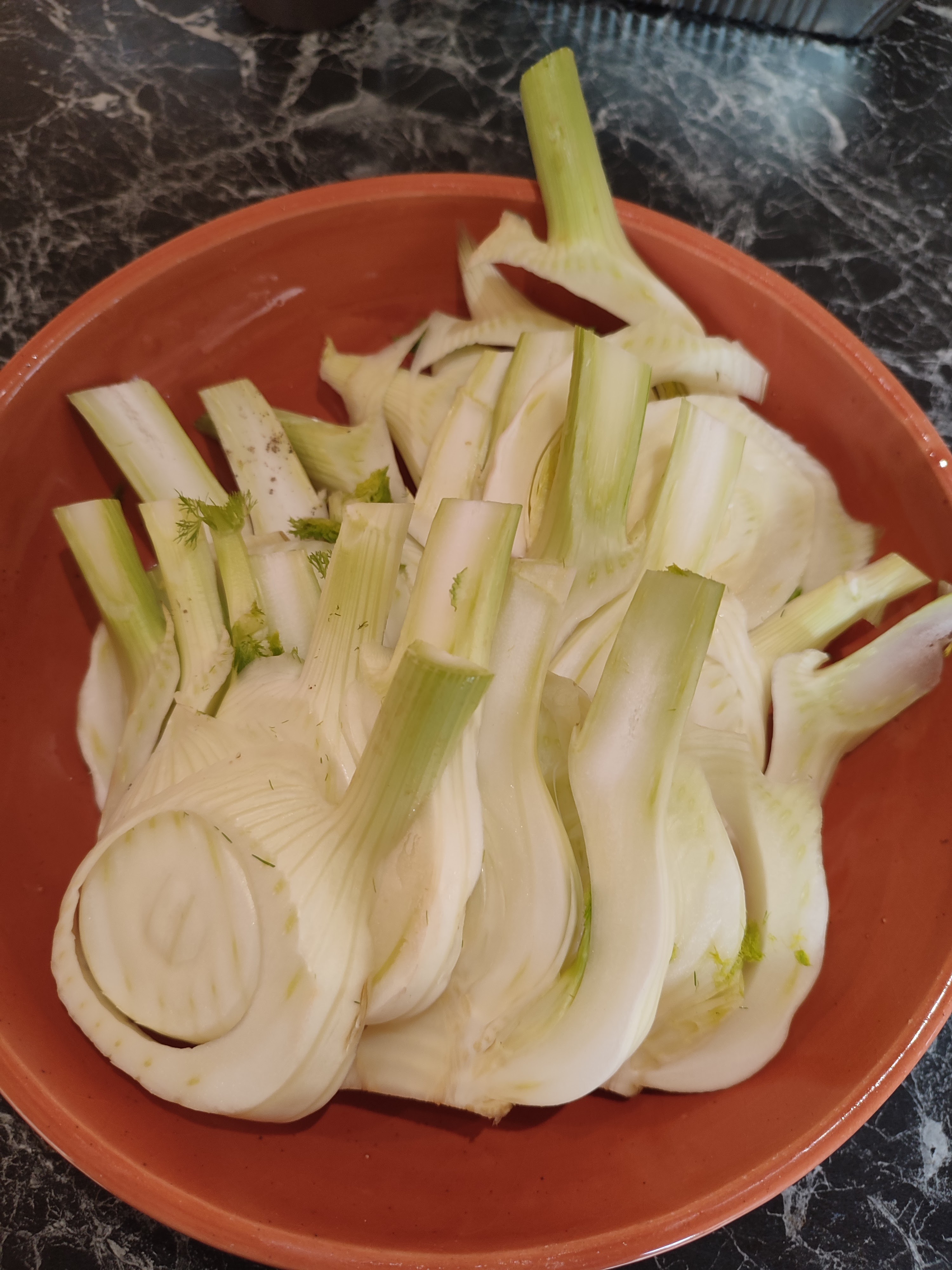 - Snij de venkel in plakken van ongeveer ½ cm plakken.