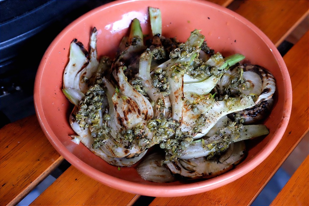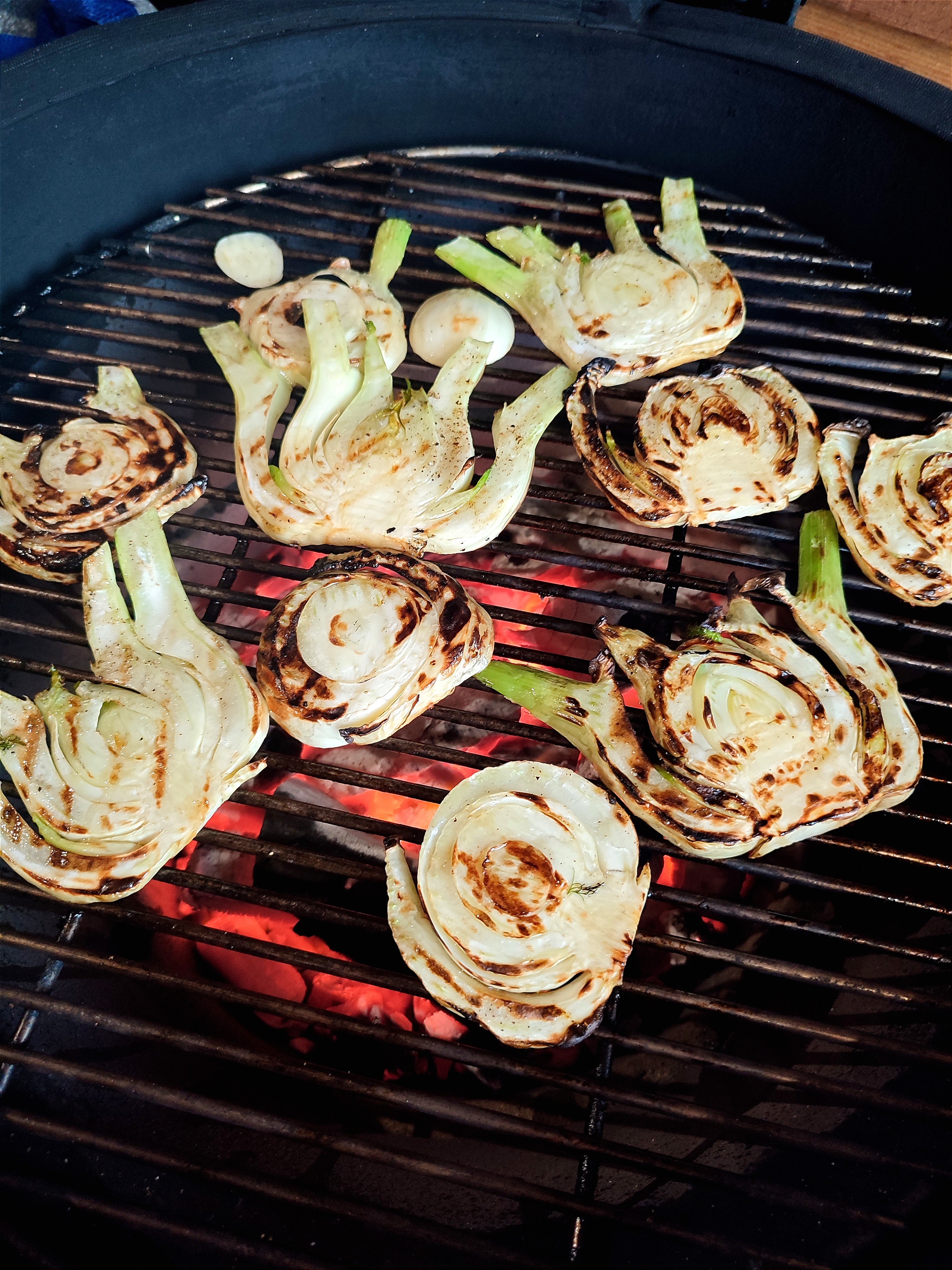 - Grill nu de venkel boven de kolen voor ongeveer 3 minuten per kant tot ze mooi gekleurd zijn.