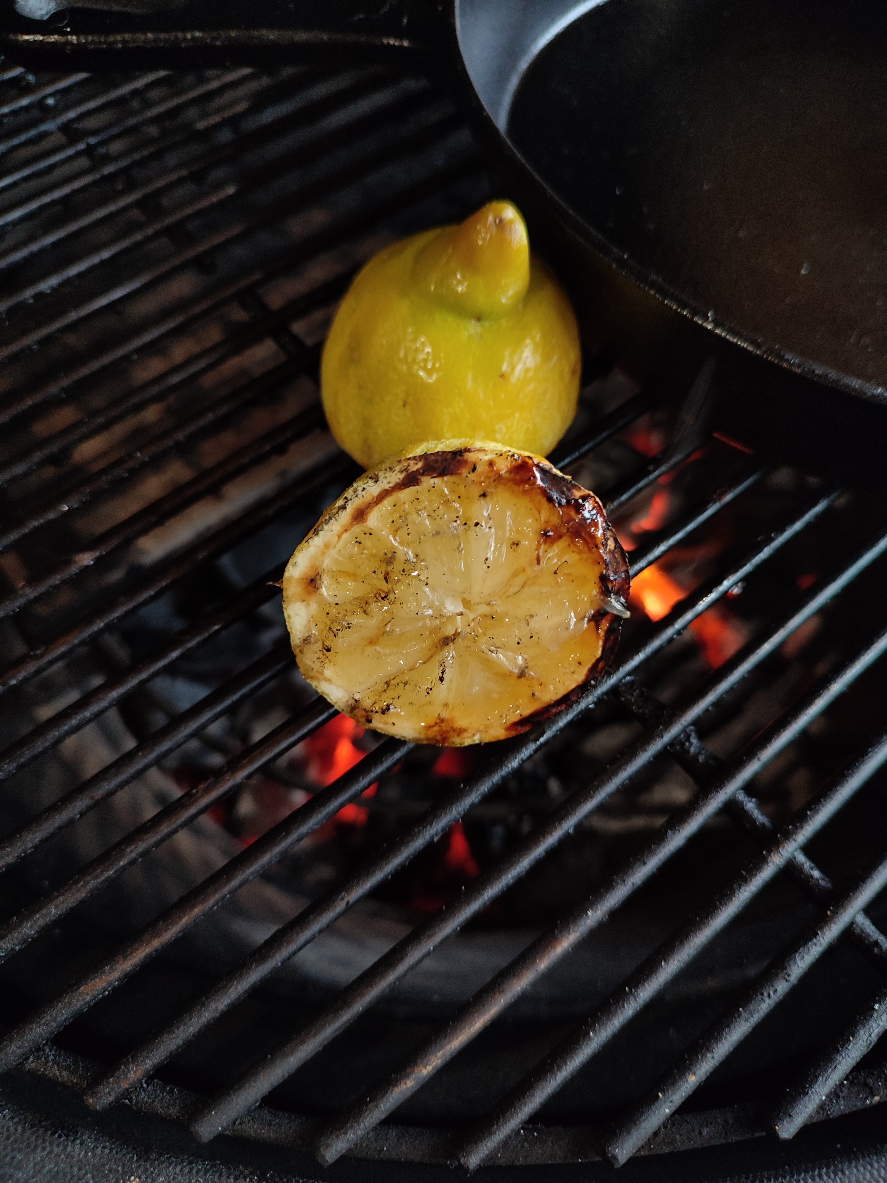 - Grill de citroen met de vleeskant naar beneden tot gekleurd.