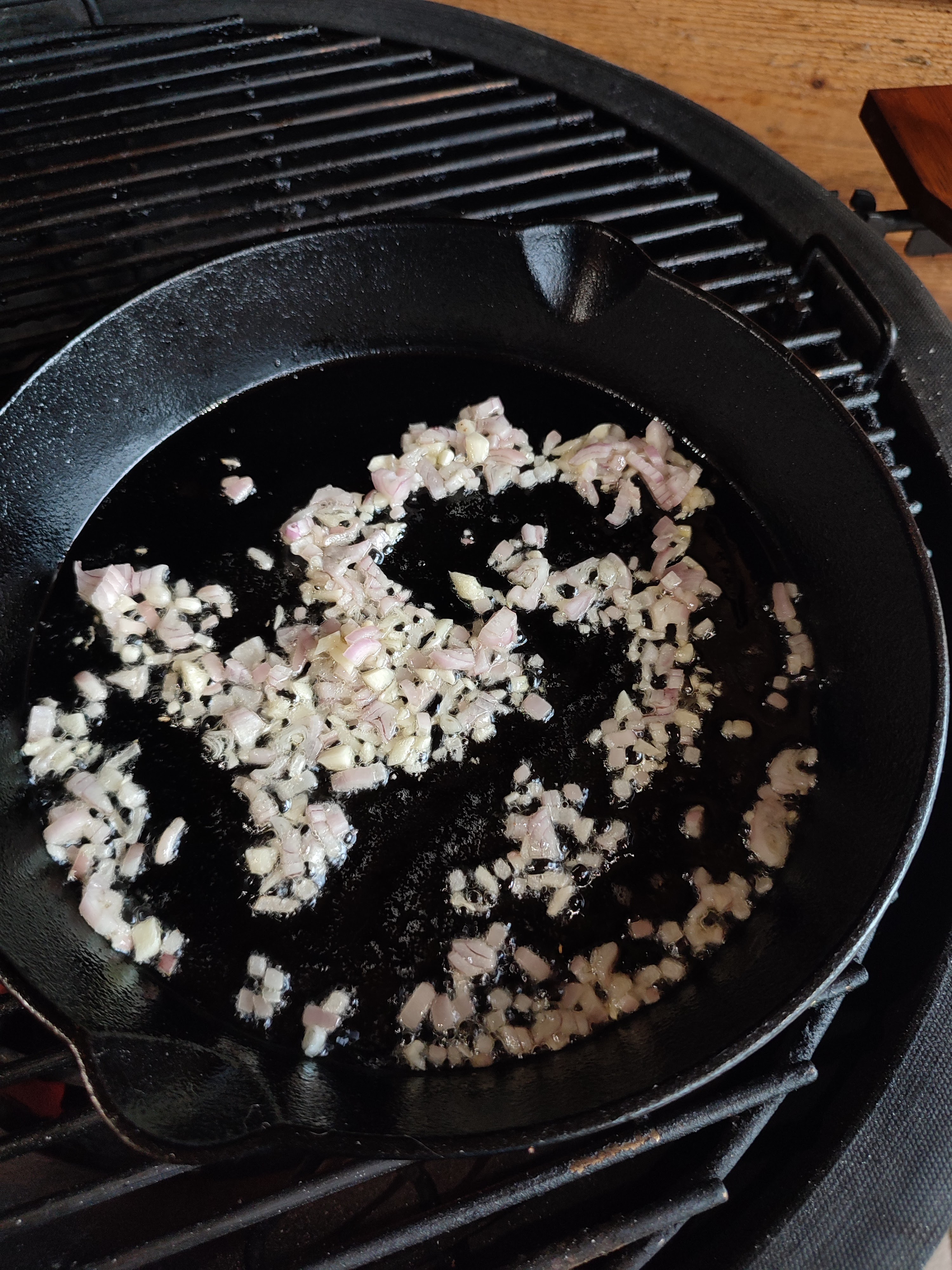 - Zet een skillet op de bbq en laat deze opwarmen.