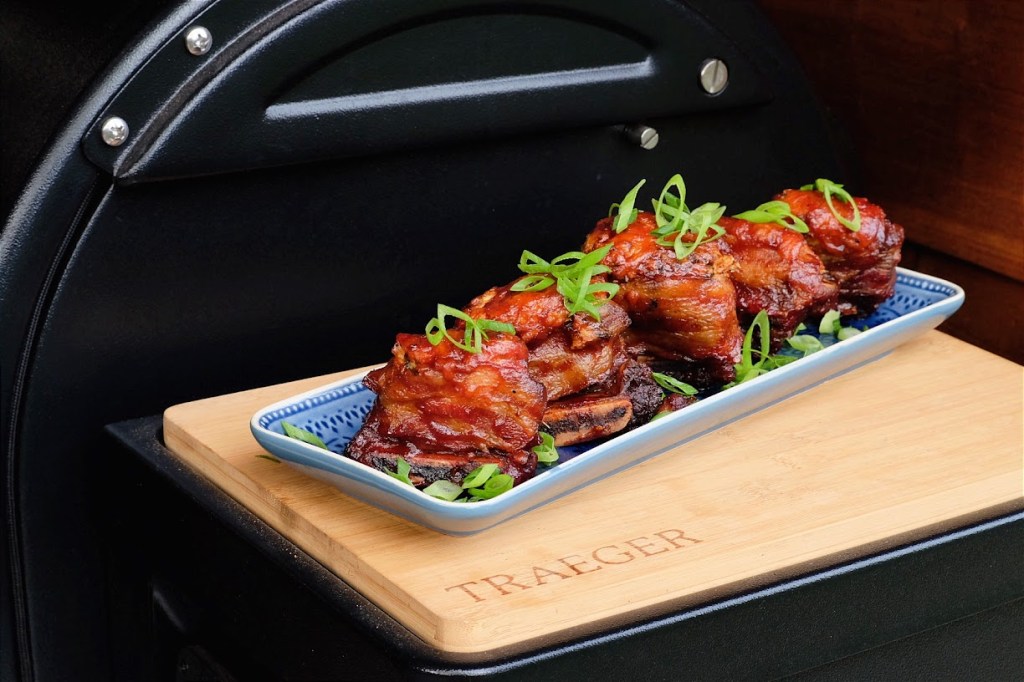 Shortrib shots zijn een bbq snack die gebaseerd zijn op pigshots. Heerlijke low and slow gerookte kleine shortribs omwikkeld met spek en een vulling van roomkaas, cheddar, bosui en bbq rub afgelakt met bbqsaus.