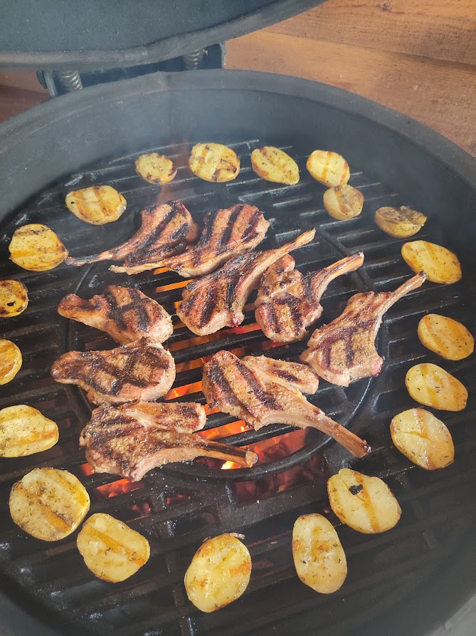 De lam met extra vet leent zich heel goed voor snel te grillen vandaar dat ik gekozen heb om ze los te snijden en op hoge temperatuur lekker te grillen. Samen met de gepofte cavemijnstyle bieten, geitenkaas en de knoflook honing muntsaus maakt dit een heerlijk gerecht.