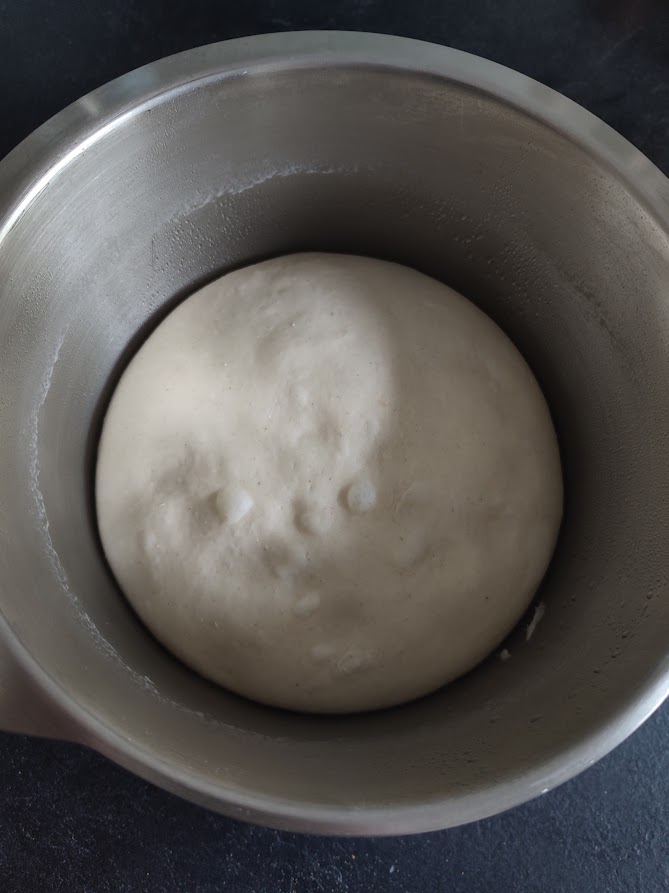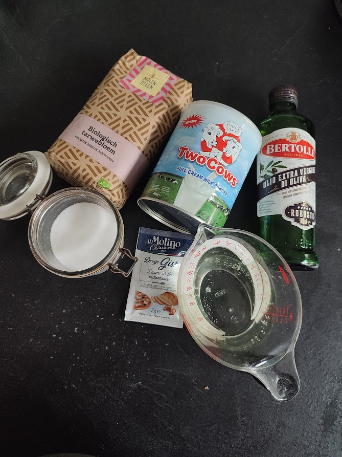 Doe alle ingrediënten in de mixer en laat deze ongeveer 8 minuten op middelste stand mixen. Als het goed is heb je nu een mooi elastisch deeg. Bol deze op en laat 10 minuten rusten na de 10 minuten bol je de bol nog een keer op. Daarna doe je hem in een ingevette kom en dek je hem af met een natte handdoek. Laat hem nu ongeveer 1 uur rijzen tot deze ongeveer verdubbeld is. Verdeel het deeg nu in stukjes van 85 gram en bol deze nog een keer op. Laat nu weer 15 minuten rijzen. Verwarm ondertussen een skillet voor op de bbq op 180 graden directe hitte of op het fornuis met middelmatige hitte. Smeer de werkbank in met een beetje olie en de deegroller ook en rol hiermee een deegbol uit tot de formaat van je skillet. Leg de bol nu in de skillet en doe er een klein scheutje water bij hierdoor worden ze extra luchtig wil je liever een iets krokantere pita hebben laat dan het water weg. Bak de pita nu aan een kant voor ongeveer 2 minuten tot hij begint te kleuren. Draai de pita daarna op en bak voor nog eens 2 minuten. Haal de pita uit de pan en leg op een bord ingewikkeld in een handdoek om hem warm te houden. Herhaal dit nu met de rest van de pita’s. nu zijn ze klaar voor gebruik. Wil je ze al eerder voor de dag zelf bewaar ze dan in de handdoek en warm daarna even op op de bbq of in een pan. Houdt je nog over doe ze dan in een plastic zak als ze volledig afgekoeld zijn en dan kun je ze de dag ernaar nog een keer opwarmen.