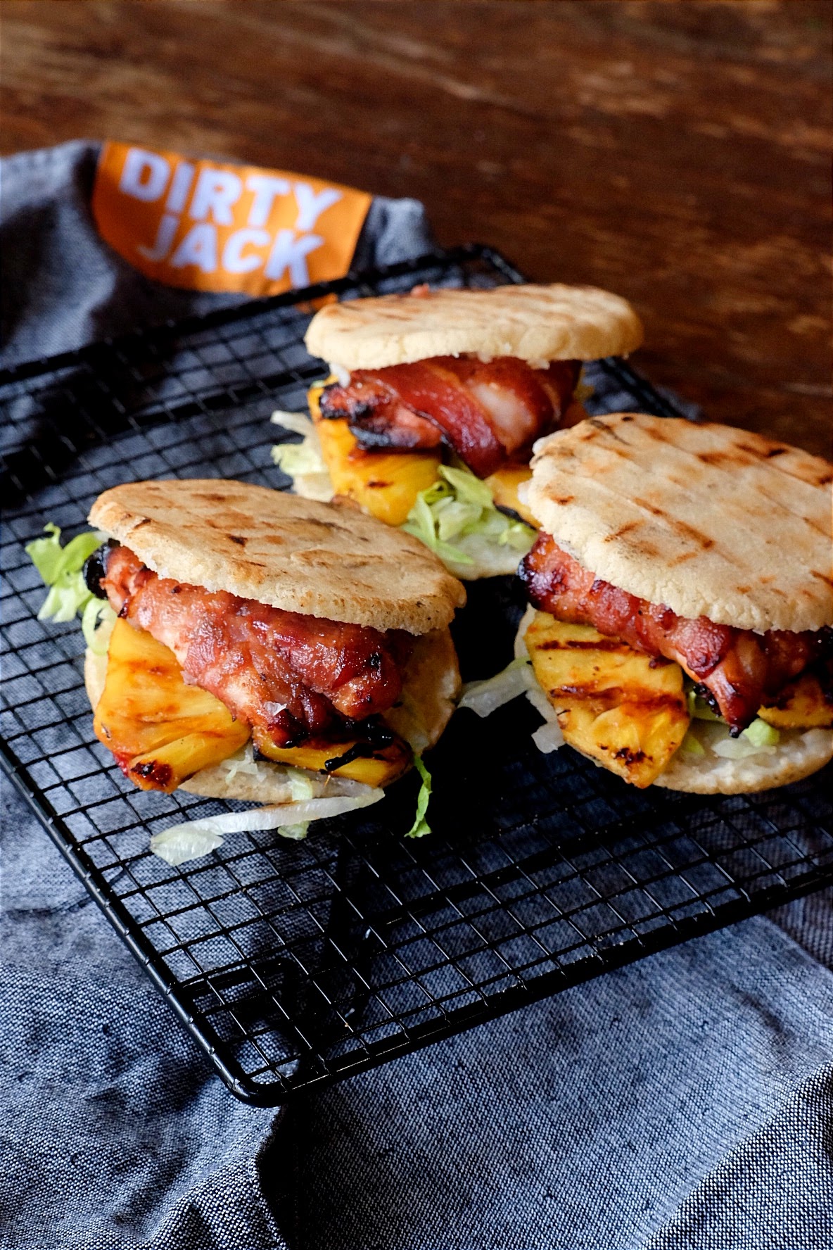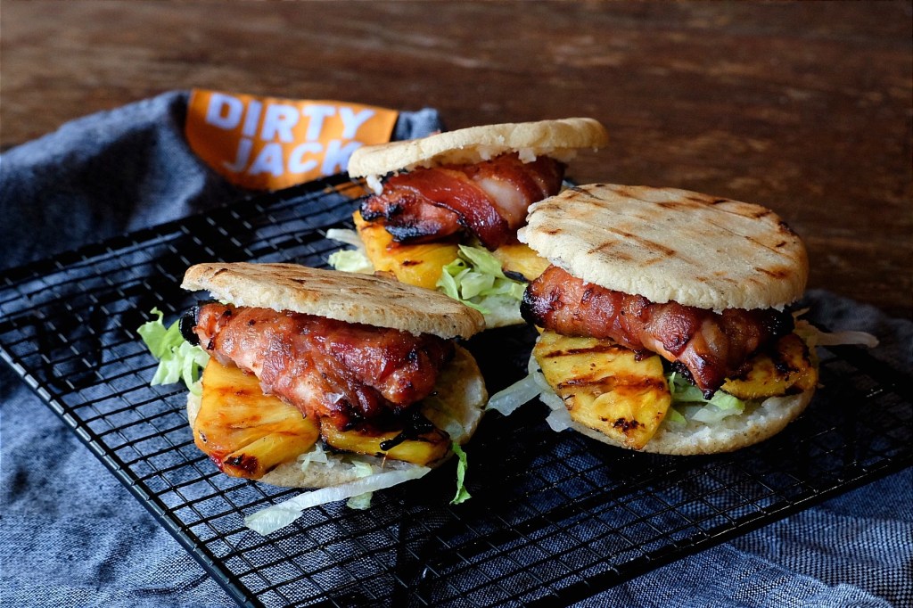 Lekker stevig broodje gevuld met sweet en spicy kippendijen omwikkeld met spek en gegrilde ananas.