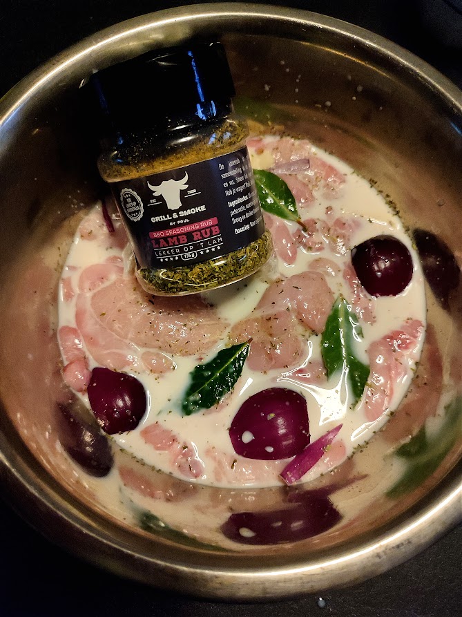 Begin met de avond ervoor de lamszwezerik in de melk te leggen met de knoflook, ui, laurier en de lamb rub. De bbq mag de volgende dag klaar gemaakt worden voor indirecte hitte op 130 graden.