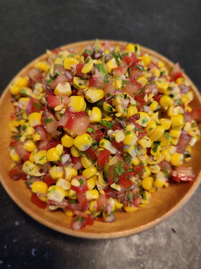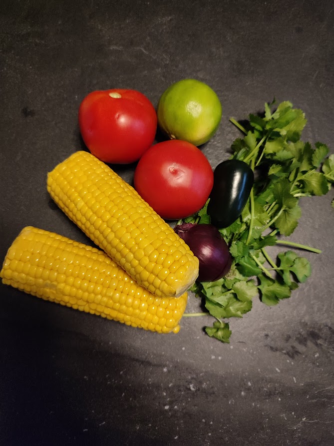 Snij de maiskorrels van de kolven of laat het blik mais uitlekken. Haal de zaad uit de tomaat en snijdt het vruchtvlees in kleine blokjes. Snipper de ui en hak de jalapeno en kervel fijn. Rasp de schil van de limoen en pers deze uit. Meng nu alle ingrediënten door elkaar en breng op smaak met peper en zout.