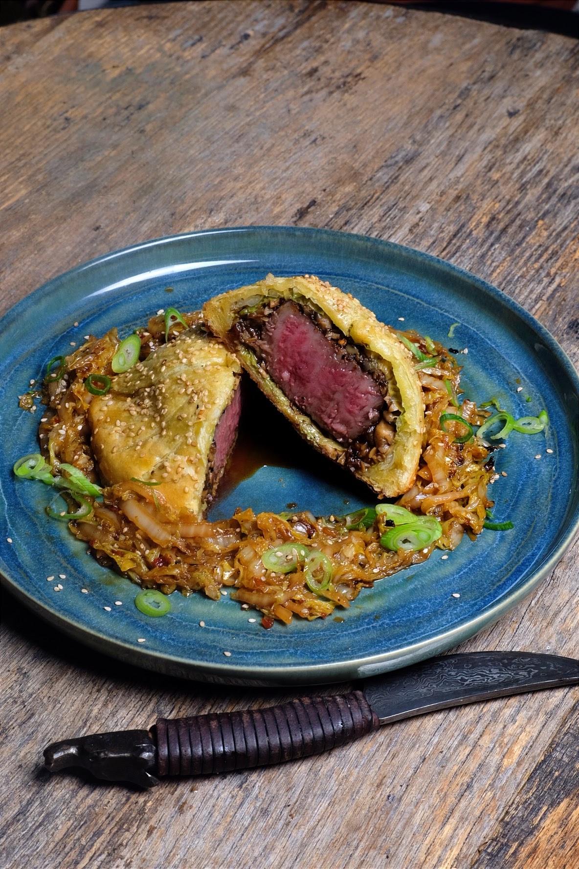 Heerlijk luxe versie op al een luxe gerecht de wagyu wellington en aangezien wagyu uit Japan komt heb ik het ook heerlijke Aziatische smaken gegeven.