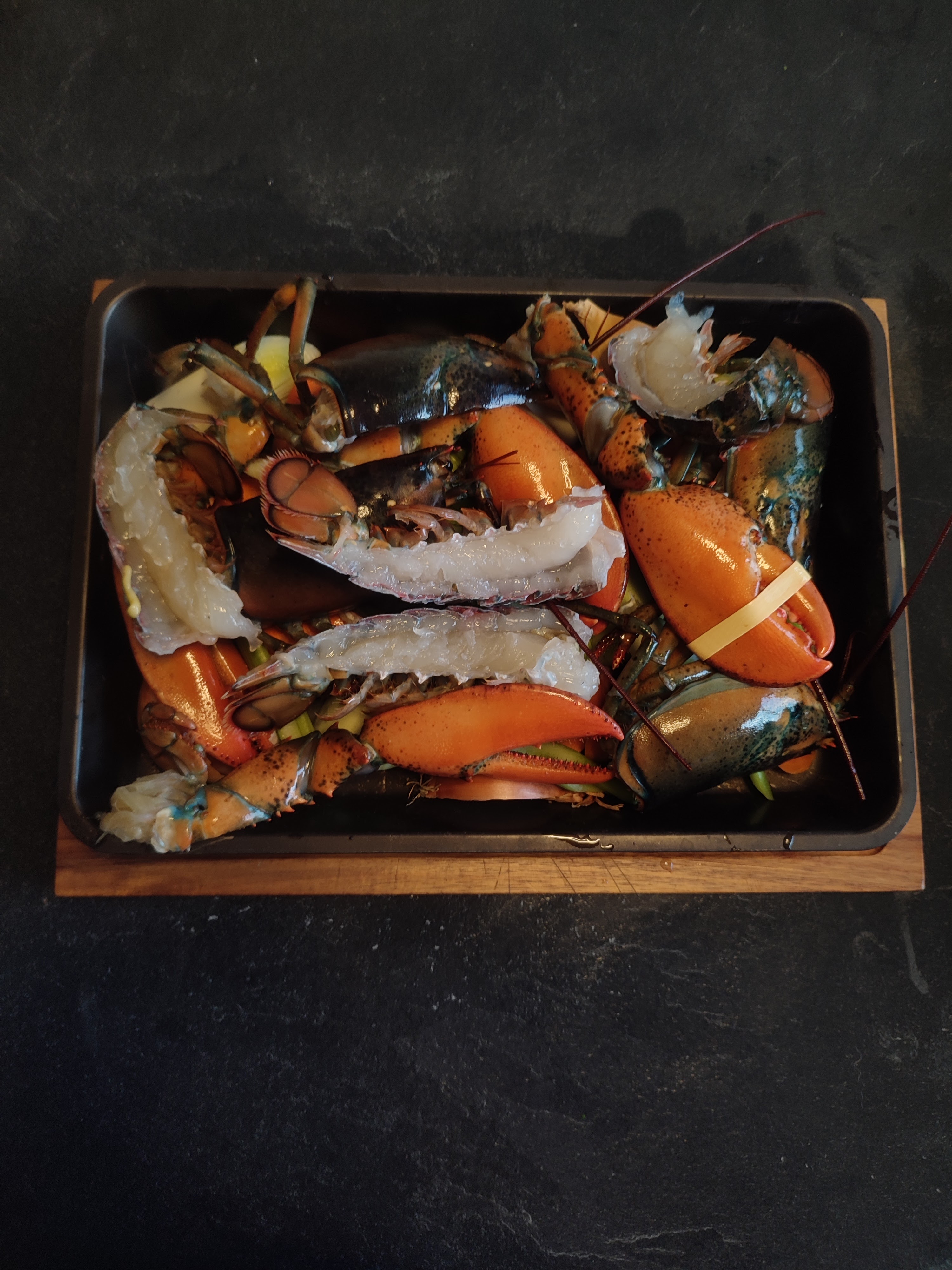 Serveer de soep uit en giet er een beetje van de cognac room overheen. Mocht je kreeften staartenvlees overhebben leg deze dan boven op de soep. Strooi er nog wat bieslook over de soep eetsmakelijk.