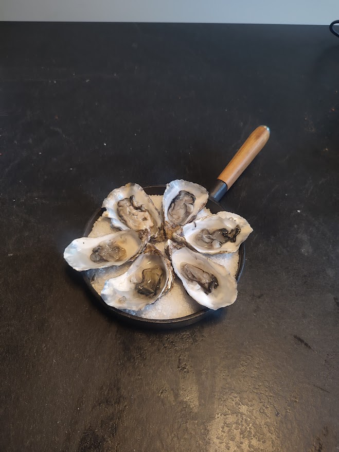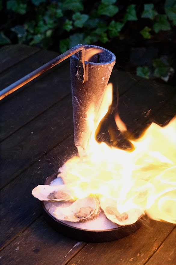 Deze oester zijn een mooie amuse en met de flambadou erbij maak je er ook nog een mooie show van.