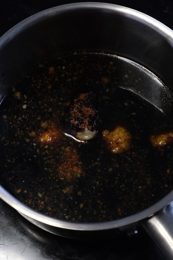 Om de saus te maken doen we alle ingrediënten in een pannetje en brengen het aan de kook. Laat dit nu ongeveer 7 minuten koken zodat het iets indikt. haal het dan van het vuur en laat tot kamertemperatuur afkoelen.
