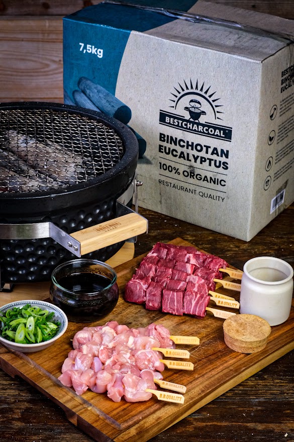 Steek de bbq aan en laat deze zo heet mogelijk worden het beste is voor dit gerecht een shichiren met binchaton te gebruiken. Maar een gewone bbq heel heet stoken werkt ook.