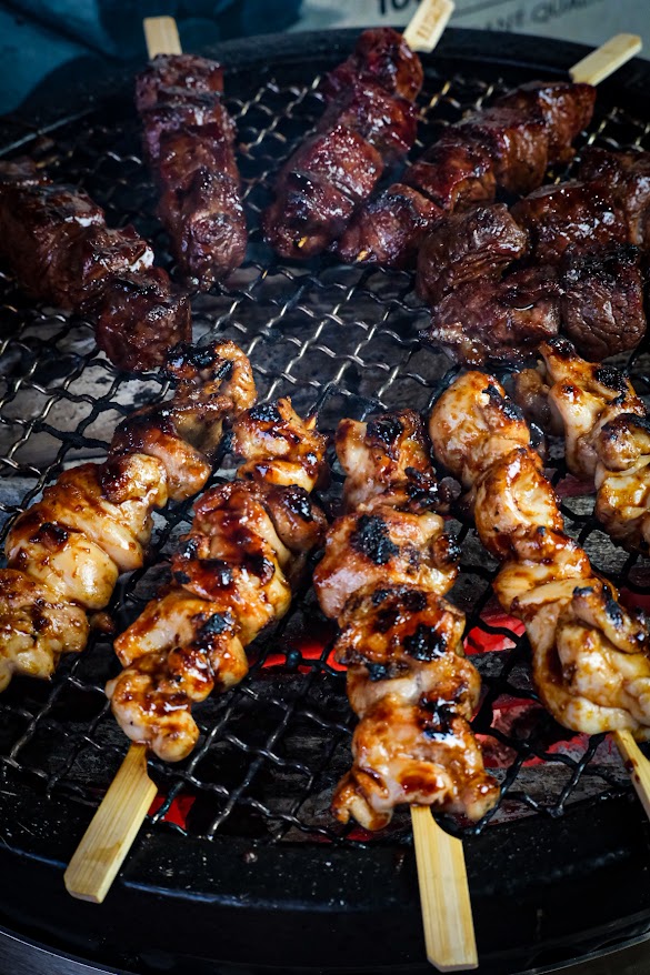 Hier is het beste bekend als zijnde yakitori maar dit geld eigenlijk alleen voor alle spiesje van kip want het woord tori betekend kip in het japans. En aangezien ik kip en rund gebruik is de verzamelnaam voor deze spiesjes kushiyaki.
