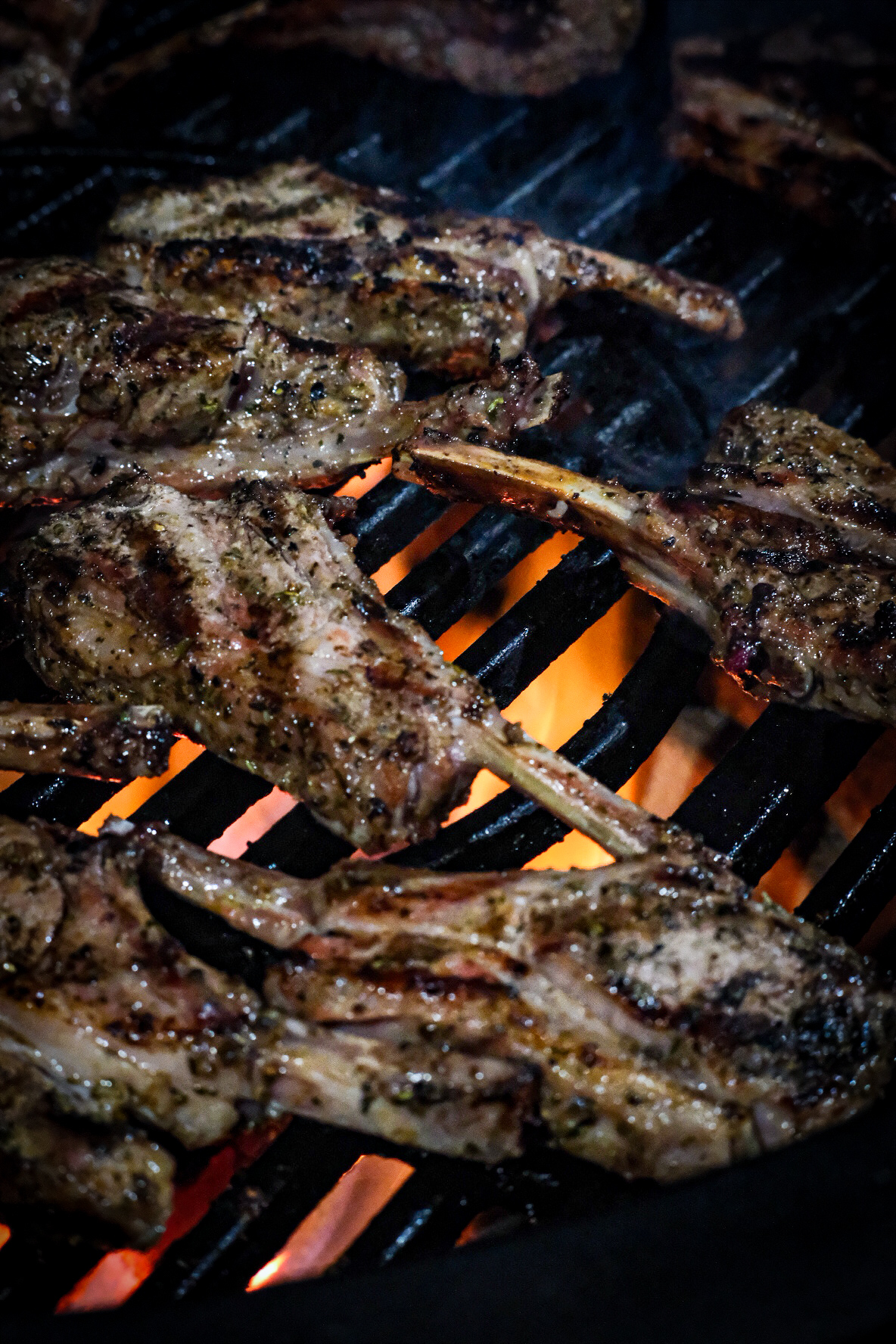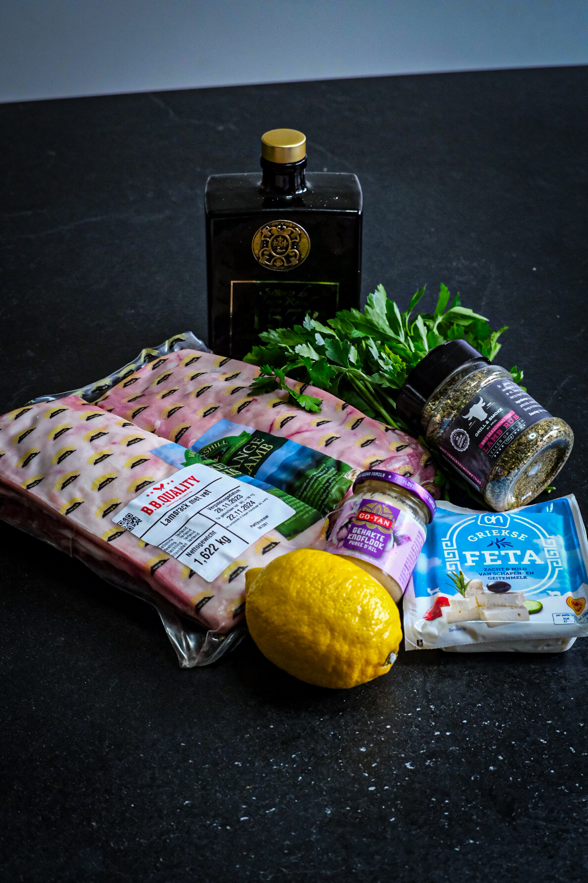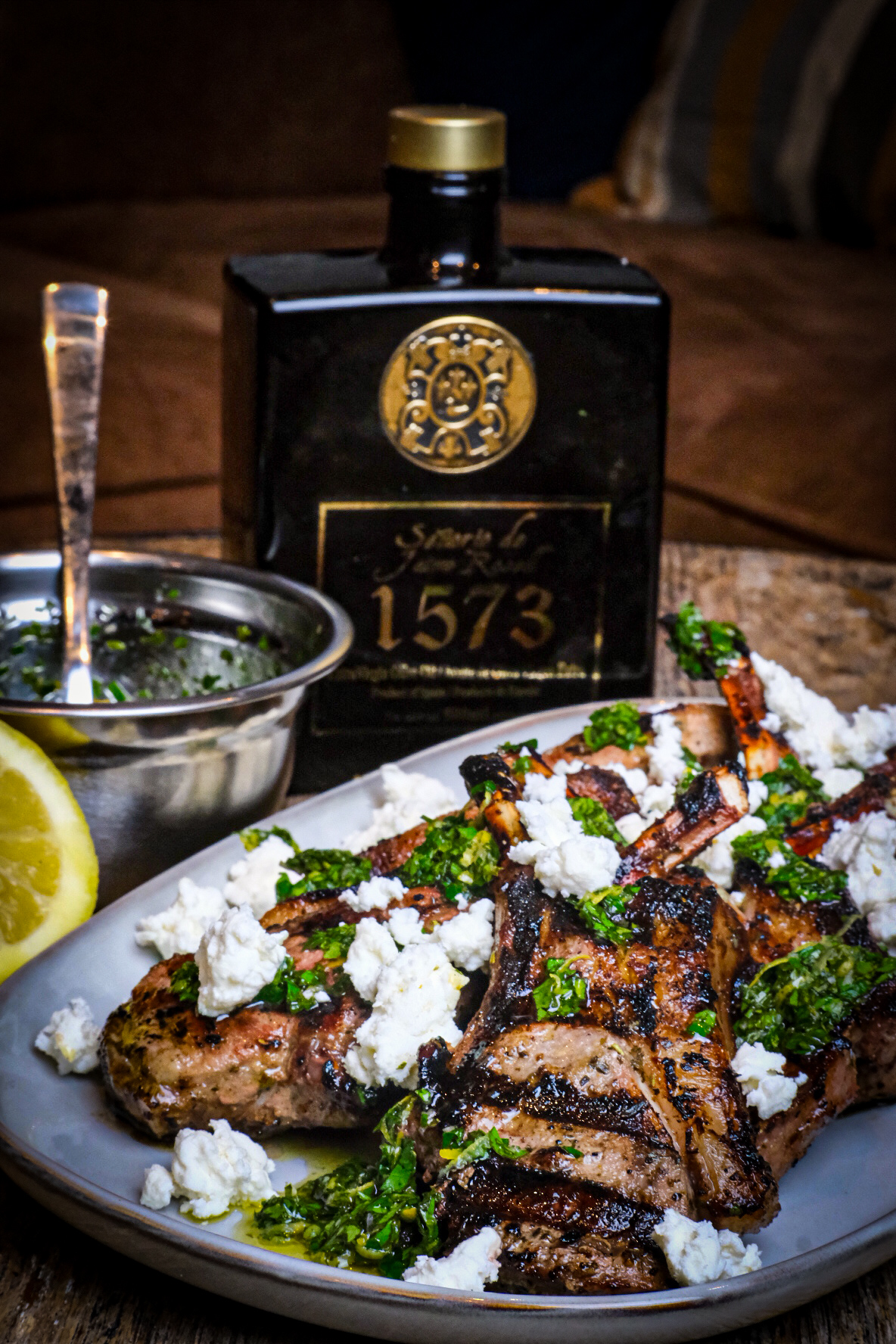 Lekkere gegrilde lamsrack met een frisse kruidige saus en feta kaas