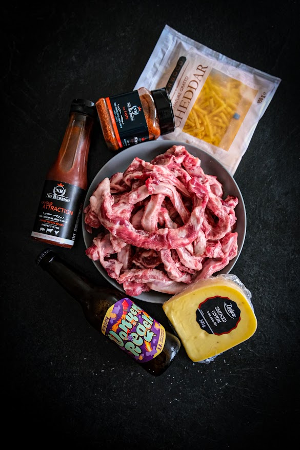 Snij als je lange ribfingers hebt ze door de midden en meng ze dan met de rub. Leg het rookhout op de kolen en de ribfingers op het rooster. Gaar deze nu tot lekker zacht in 1,5 uur mochten ze er net niet zijn laat ze dan iets langer liggen. doe de appelsap in de spuitfles en spray om de 30 minuten de ribfingers in. Bij het laatste kwartiertje doe dan de ribfingers in een kom en doe er de bbq saus bij en meng dit voorzichtig maag goed door elkaar en leg ze nog voor 15 minuten terug op de bbq. Maak ondertussen de bier kaas saus zoals in het recept staat aangegeven.