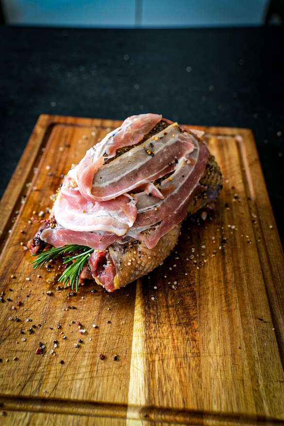 Keer een ander soort gevogelte dan de gewone hele kip. Fazant is wat steviger van vlees maar heeft meer smaak van zijn eigen dan kip. Vanwege dat het een mager stukje vlees is en dus wat sneller droog kan worden is de bereiding ideaal. Door het omwikkelen van de borst met spek en het boven de groenten en saus te garen blijft deze lekker sappig.