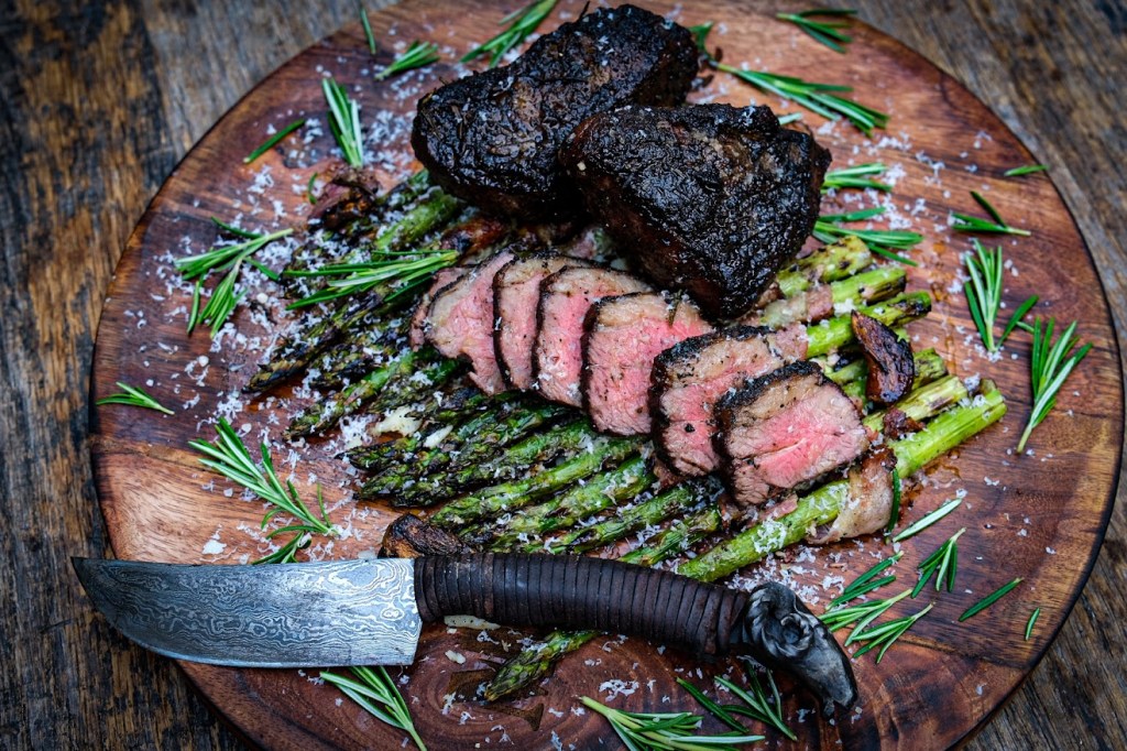 Een andere manier om een mooie steak te bakken die flink wat grond wint in Amerika als een manier om een hele mooie korst op je steaks te krijgen. En bij dit gerecht gaan we de maminha in mooie steaks snijden en dan op deze manier bakken. Dit is lekker met gegrilde groene asperge.