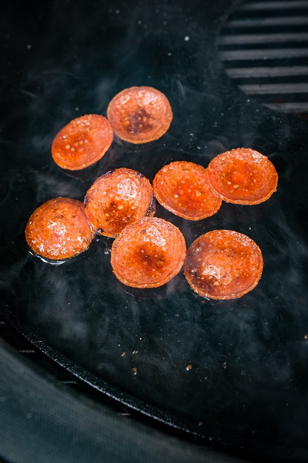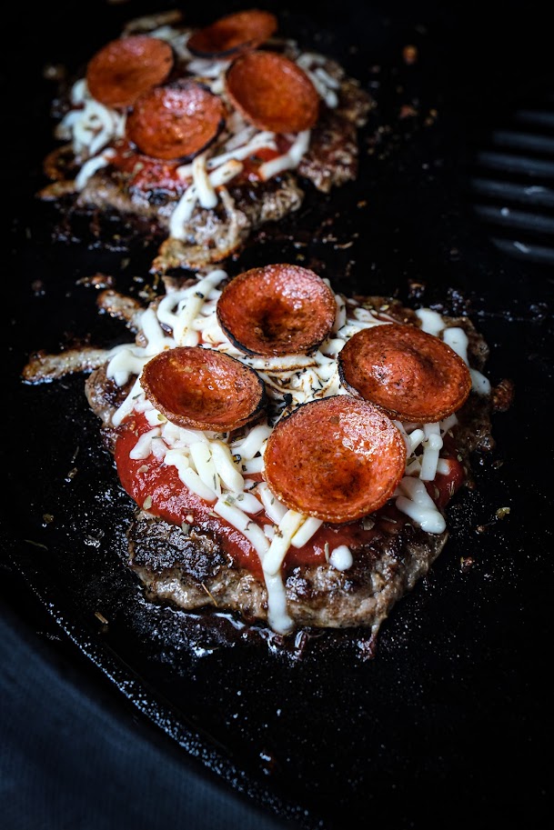 Snij de broodjes open en grill deze even op de skillet of bakplaat. Bak hierna de pepperoni vast even op de bakplaat zodat de olie ervan vrij komt hier bakken we dadelijk de burgers in. Zodra ze pepperoni mooi gebakken is haal deze dan van de plaat. Doe nu de smashburgers erop en smash ze zo plat mogelijk en laat ze aan een kant mooi bakken voor een paar minuten tot ze een mooie korst hebben. Draai de burgers dan om en doe dan een beetje pizza saus op elke burger en leg hier dan de fior di latten en pepperoni overheen en strooi er nog wat italian rub overheen. Doe de deksel dicht en laat de andere kant ook mooi kleuren en de kaas smelten. Zodra dat gedaan is leg dan twee burgers steeds op elkaar.