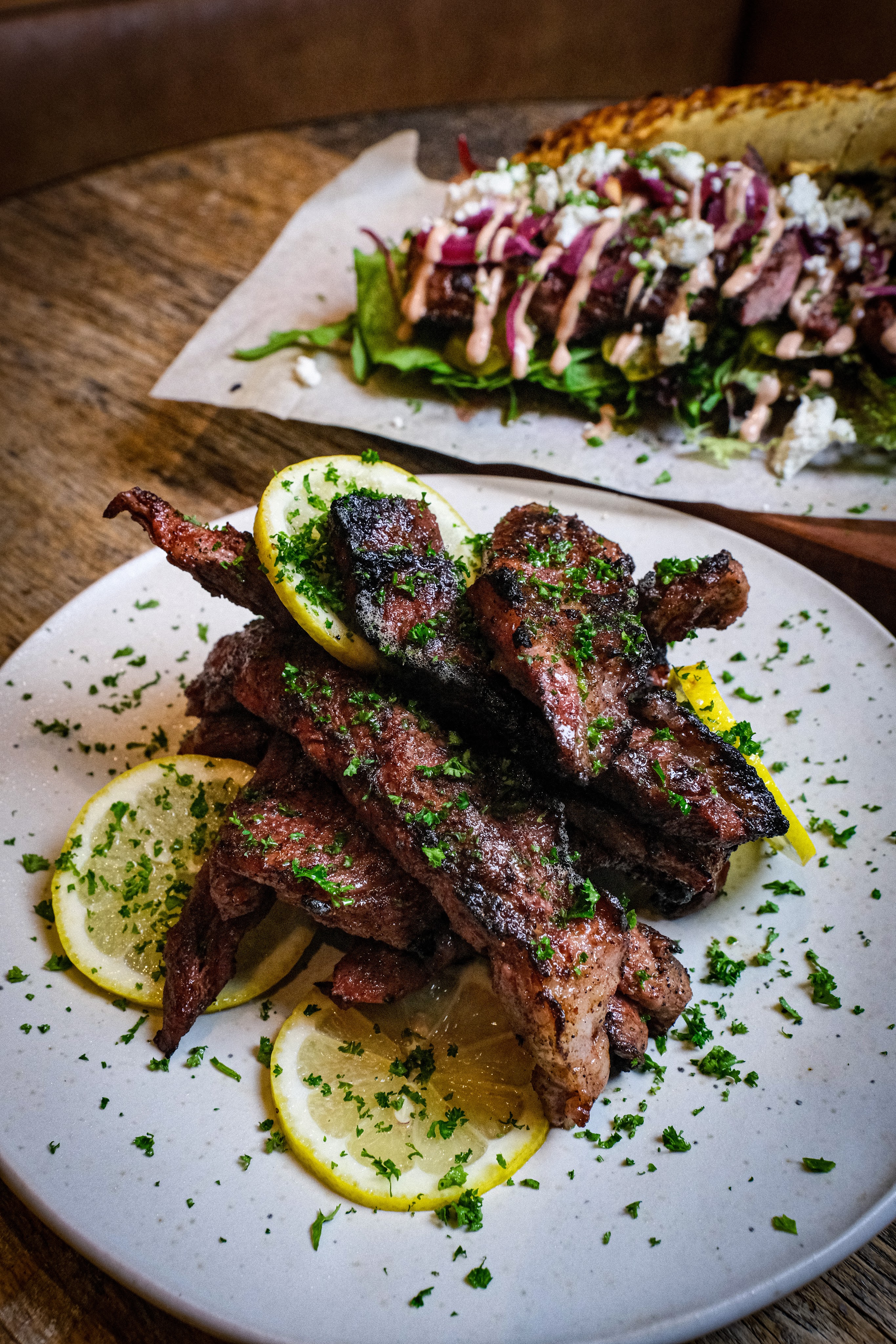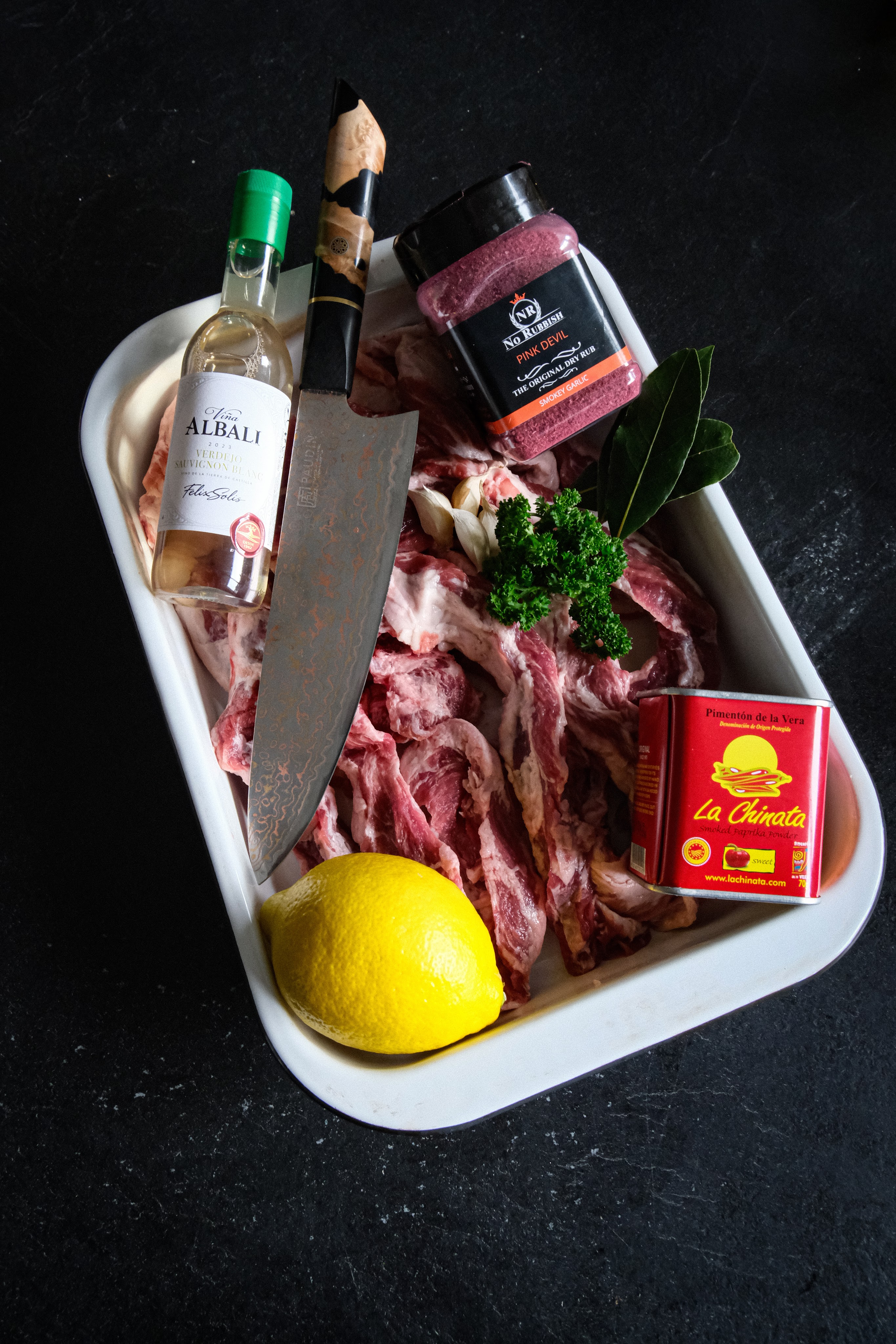 snij de citroen in plakken en plet de knoflook tenen. Doe de lagarto in een kom en doe hier de helft van de citroen schijven aan toe en knijp de uiteindes uit boven de kom. Nu mag de rub, knoflook, laurier, gerookte paprika poeder en witte wijn bij en meng dit goed door. Dek de kom nu goed af en laat minimaal 4 uur marineren langer mag ook. Zorg nu dat de bbq goed heet is en grill de lagarto aan alle kanten mooi aan vanwege het hoge vet gehalte kunnen er vlammen omhoog komen dus let goed op. Grill ze tot ze een kern van 50 graden hebben ze mogen rose van binnen zijn maar is ook niet erg al ze verder gegaard zijn ze zullen mooi sappig en mals blijven. Haal ze nu van de bbq en laat ze kort rusten.