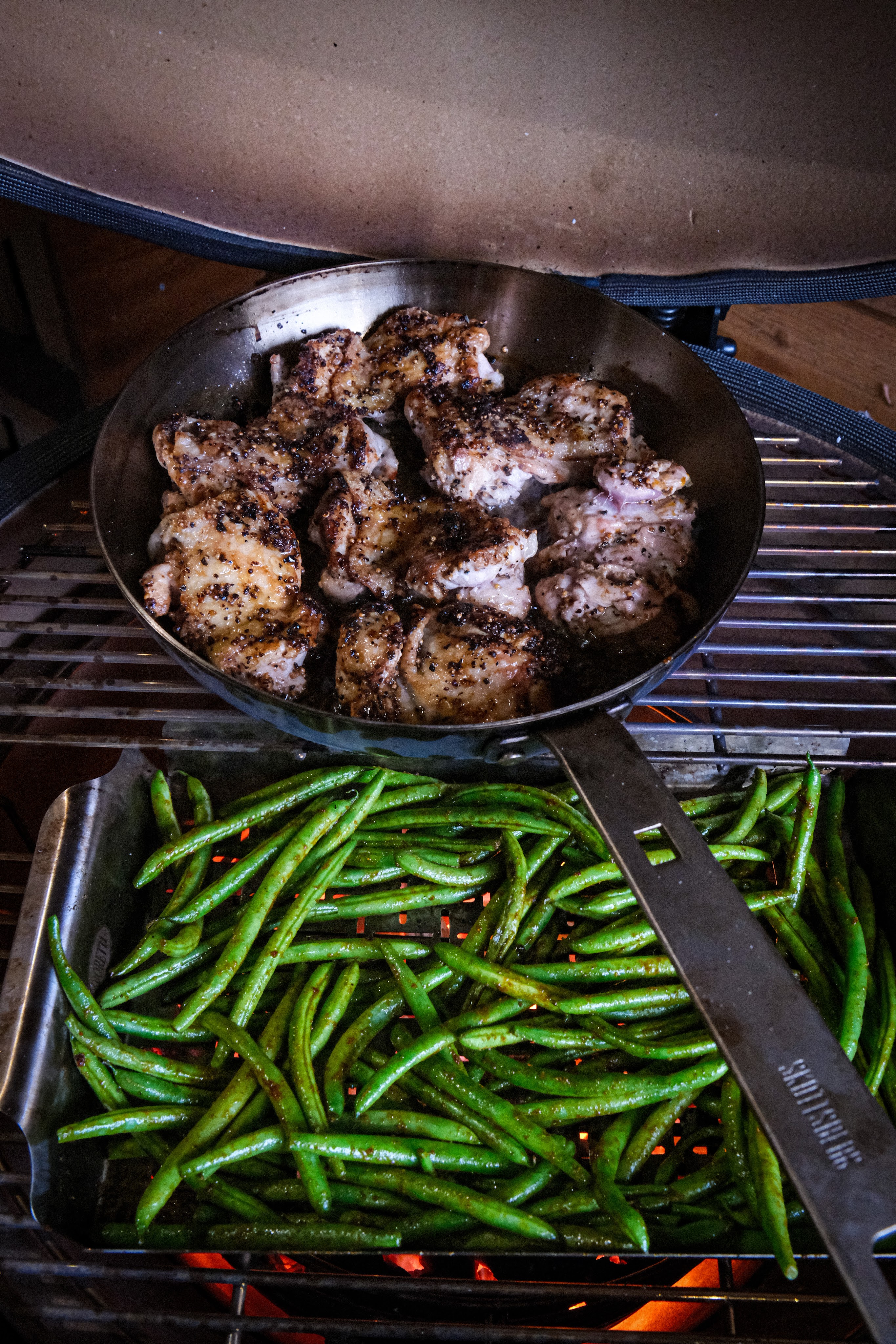 Begin met het aansteken van de bbq voor directe en breng hem naar 200 graden verwarm de skillet en de groente rek mee op.