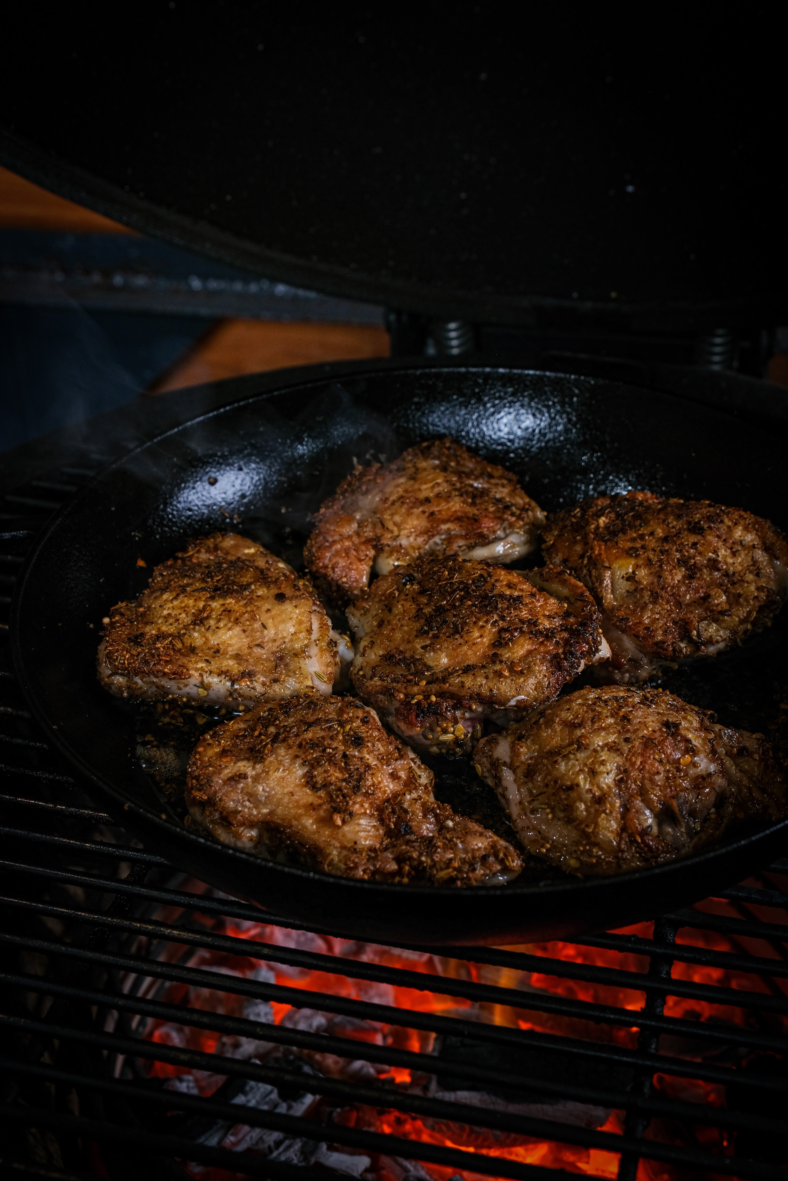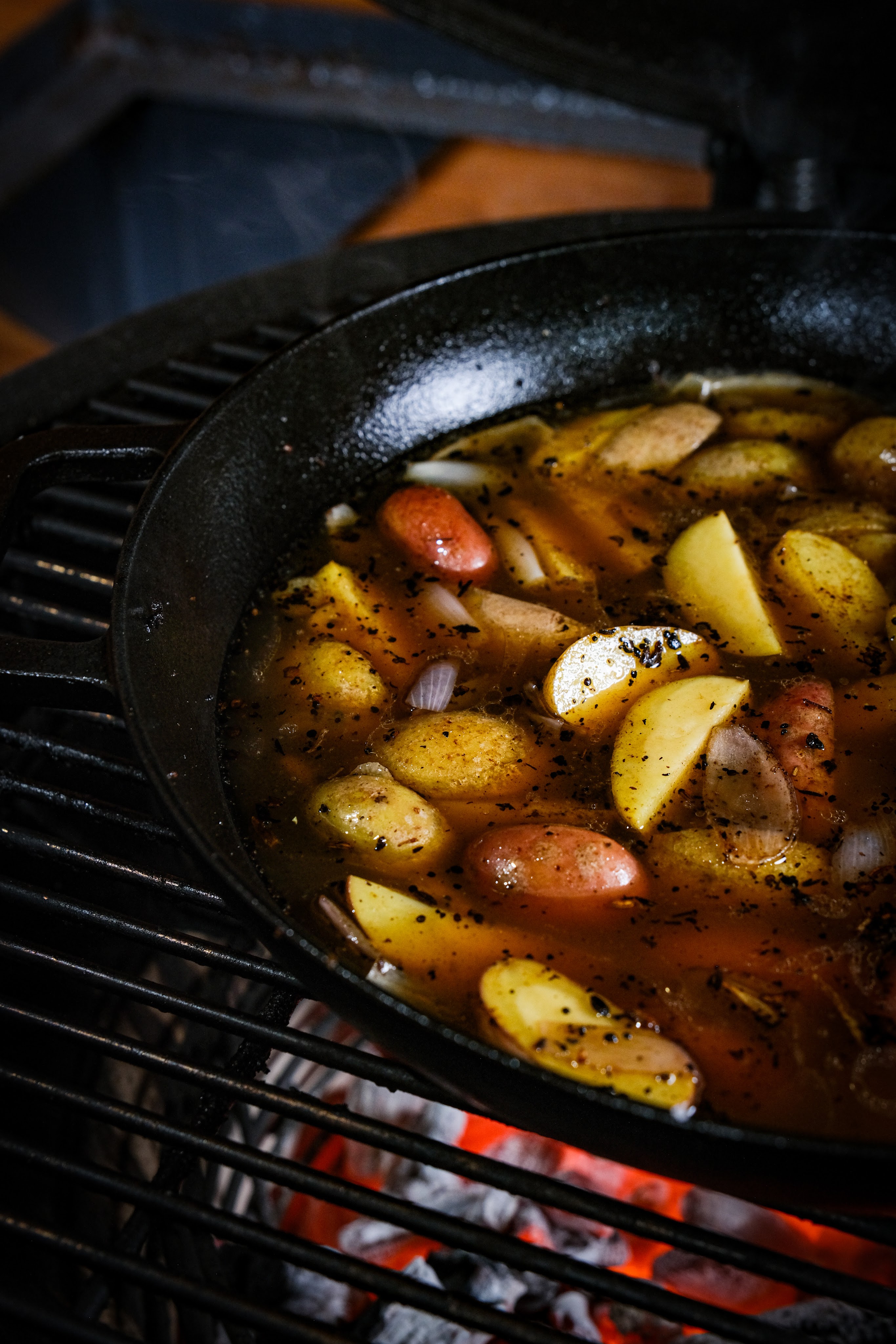 Begin met de bbq aan te steken voor directe bereiding en breng deze naar de 180 graden en laat de skillet mee op temperatuur komen.